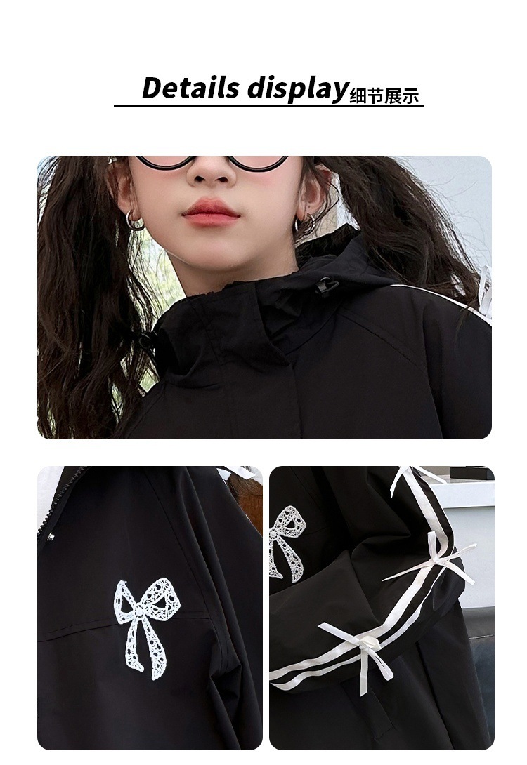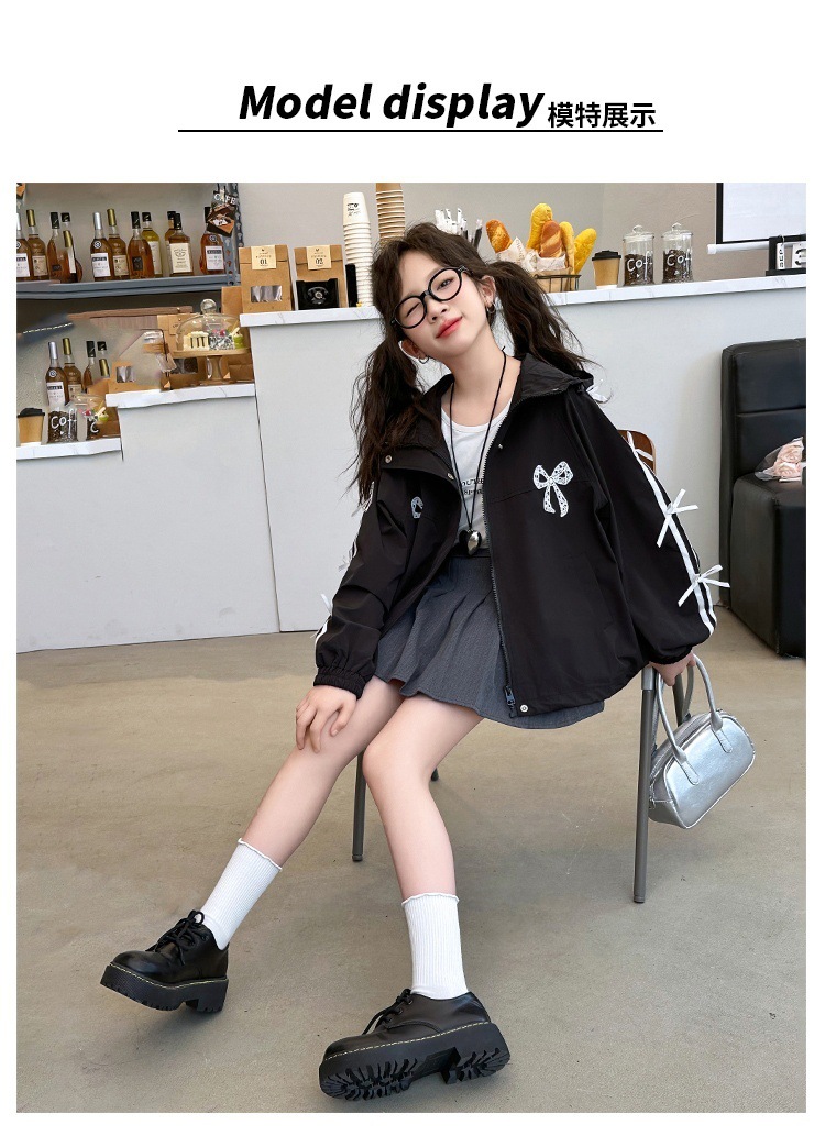 여아용 코트, 중대형 어린이 봄 가을 후드 재킷, 어린이용 검정색 윈드브레이커, 작은 아이들을 위한 패셔너블하고 다재다능한 재킷