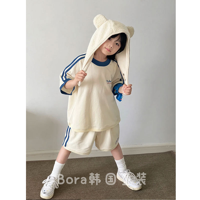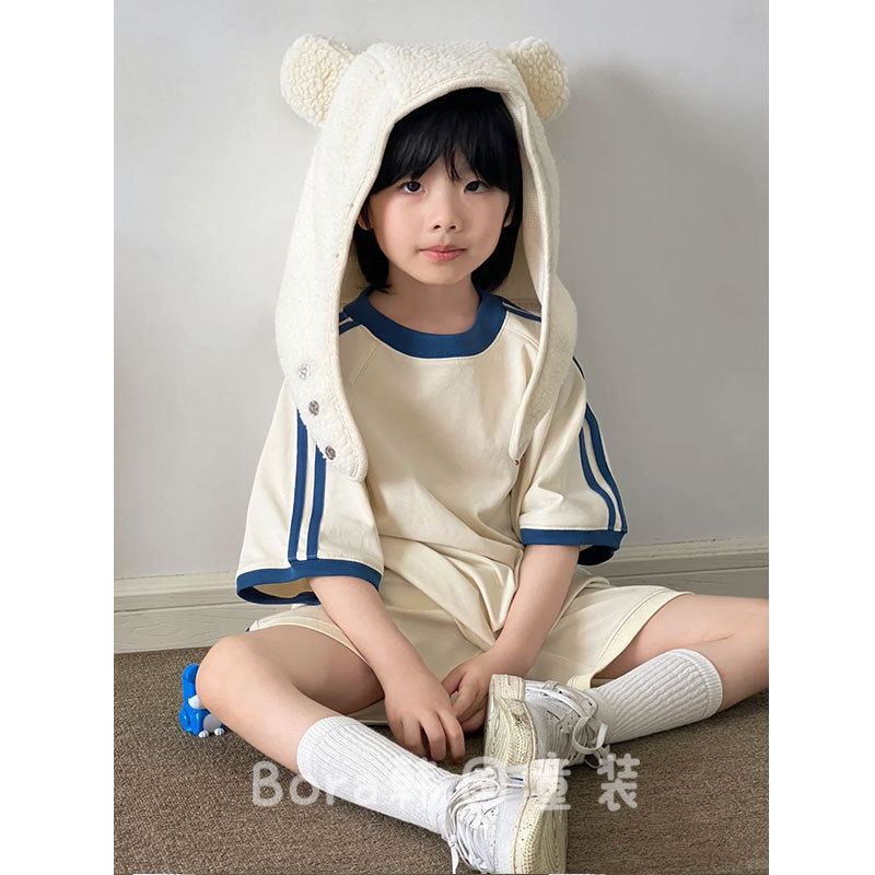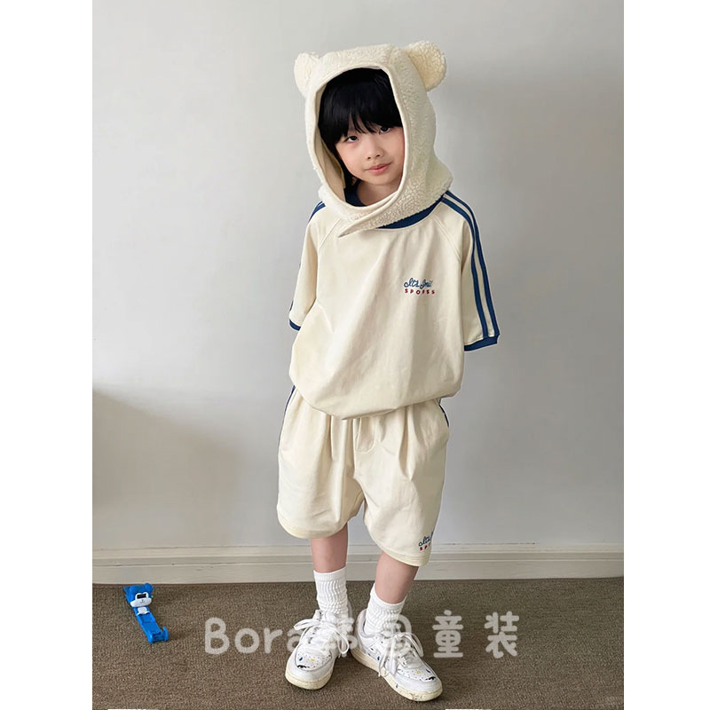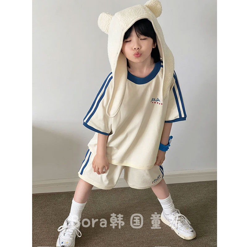 소년 세트 여름 2025 새로운 유행 어린이 스포츠 레저 소녀 반팔 반바지 줄무늬 투피스 유행 세트스토어 가기