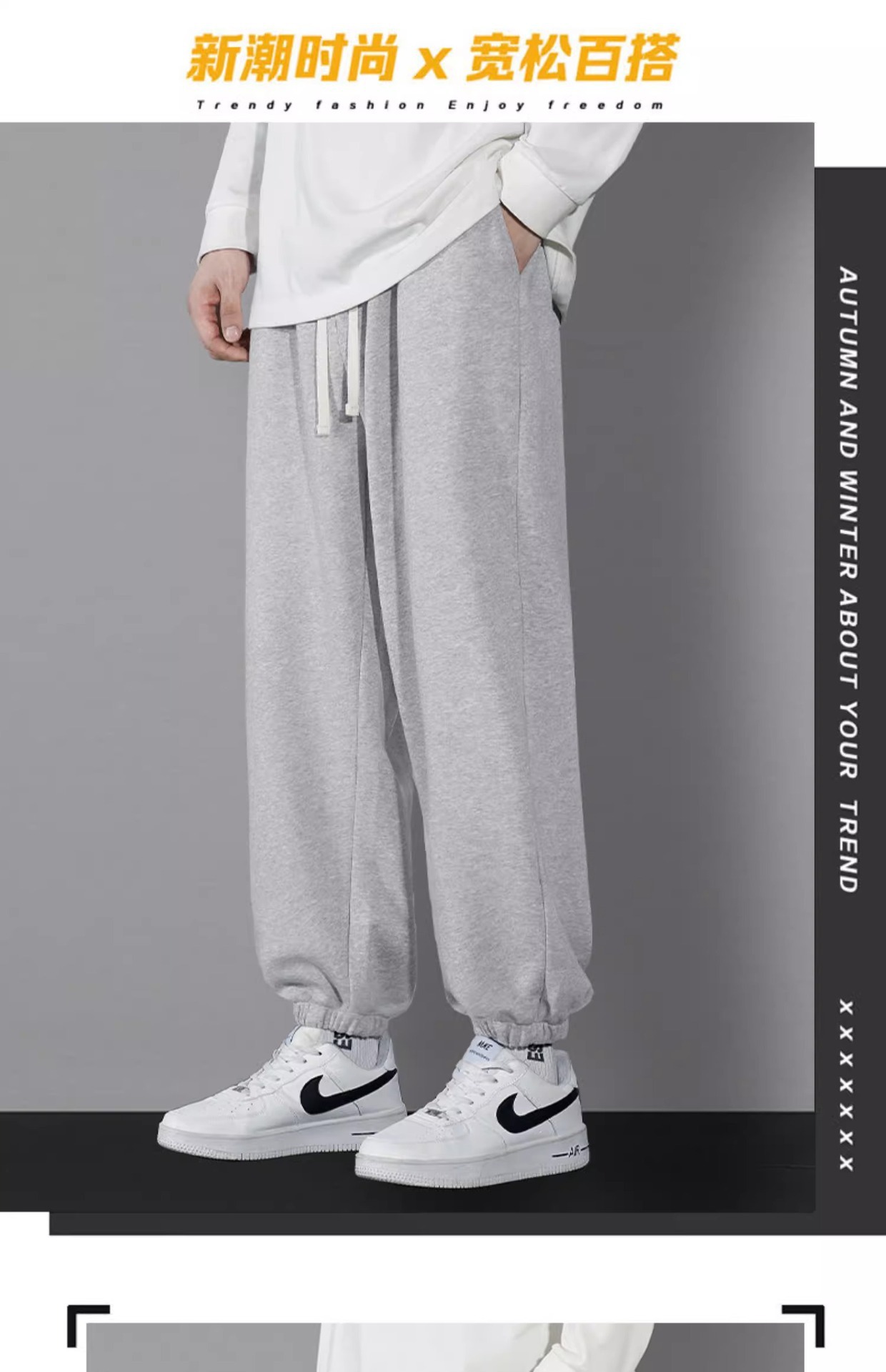 스포츠 바지 남자 봄과 가을 여름 느슨한 올매치 중량급 운동복 남자 유행 브랜드 작업복 캐주얼 긴 바지스토어 가기