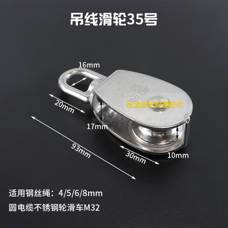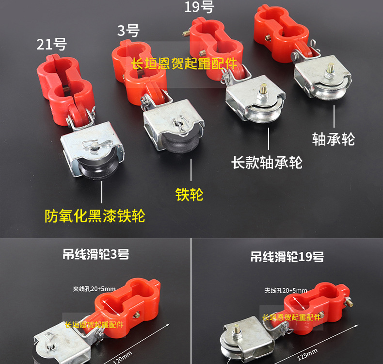 • 20번 반플라스틱 [베어링 휠]은 4/5/6/8mm 와이어 로프와 함께 사용할 수 있습니다.