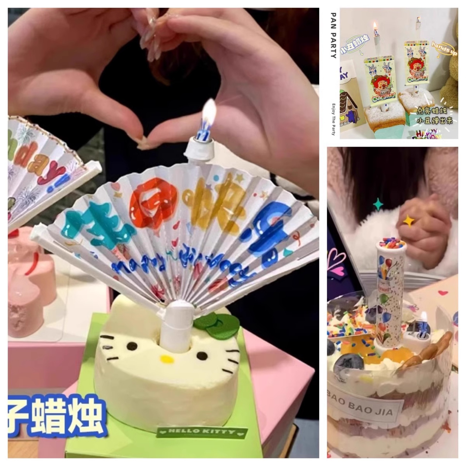 인터넷 레드 팬 모양의 생일 촛불 케이크 장식 깜짝 광대 음악 팬이 폭발 새로운 스타일을 만듭니다