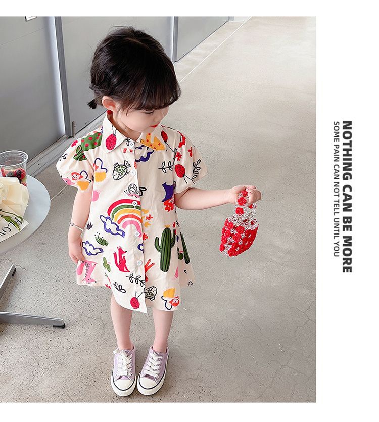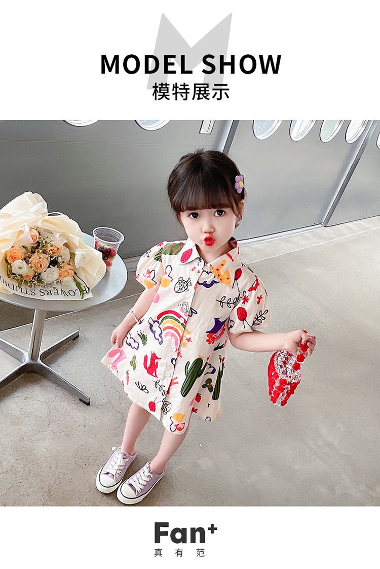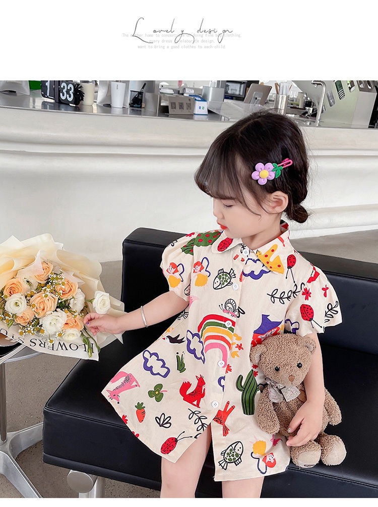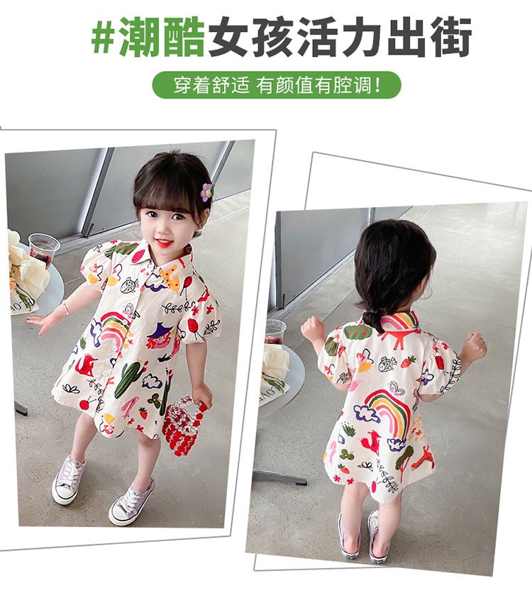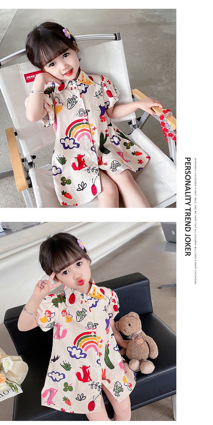 여자 여름 원피스 아기 세련된 어린이 맞춤형 유행 브랜드 한국 스타일 무지개 만화 옷깃 공주 셔츠 원피스스토어 가기
