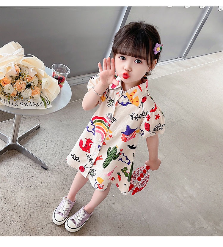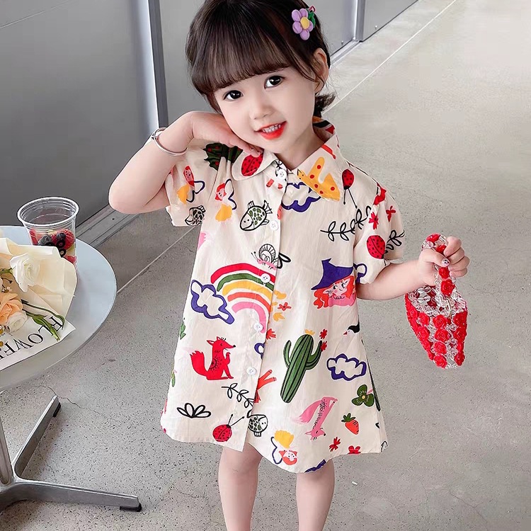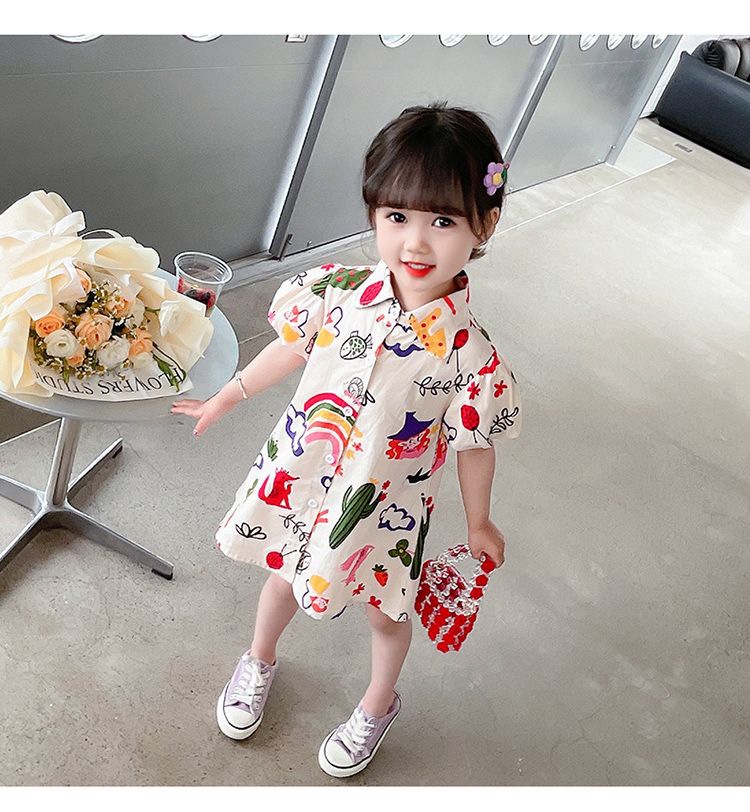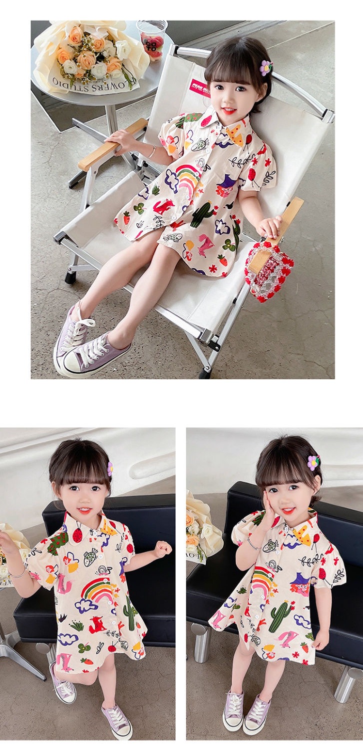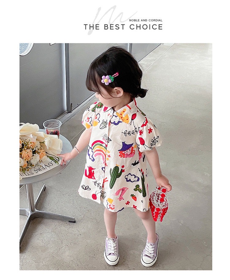여자 여름 원피스 아기 세련된 어린이 맞춤형 유행 브랜드 한국 스타일 무지개 만화 옷깃 공주 셔츠 원피스스토어 가기
