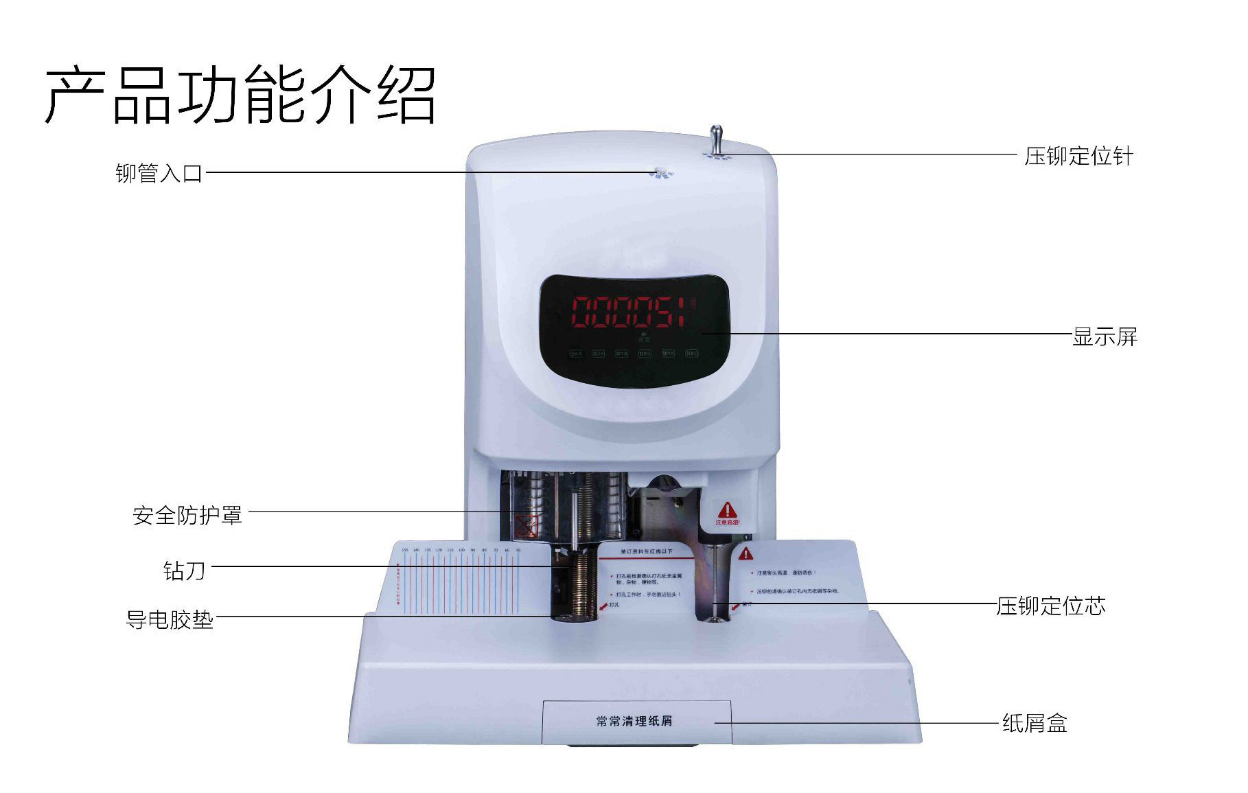 快速装订:电动打孔、电动压铆,省时省力,装订快速;
