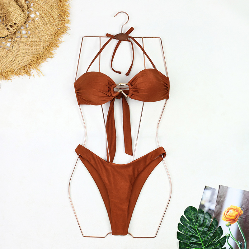 25 새로운 수영복 유럽과 미국의 단색 삼각형 비키니 섹시 스트랩리스 스플릿 수영복 여성 국경 대외 무역 비키니스토어 가기