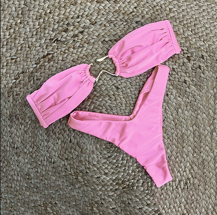 25 새로운 수영복 유럽과 미국의 단색 삼각형 비키니 섹시 스트랩리스 스플릿 수영복 여성 국경 대외 무역 비키니