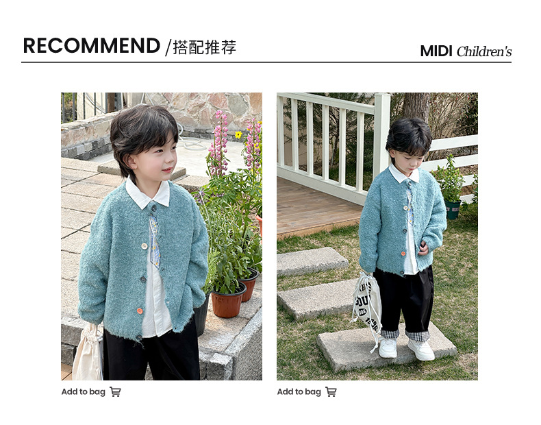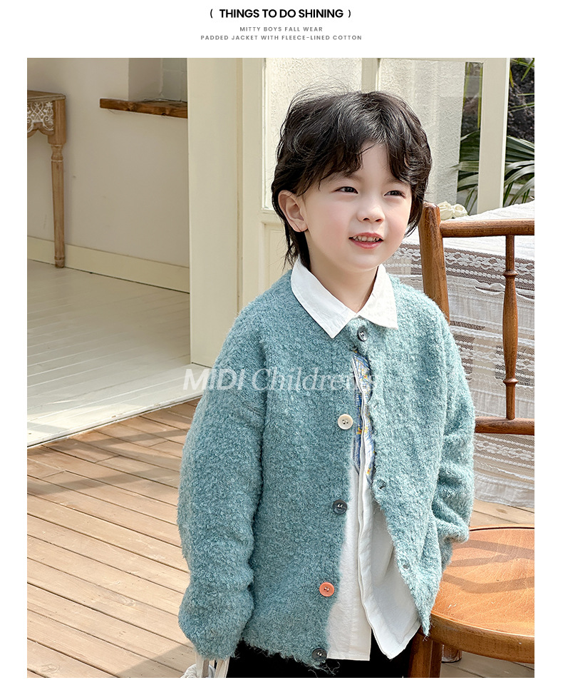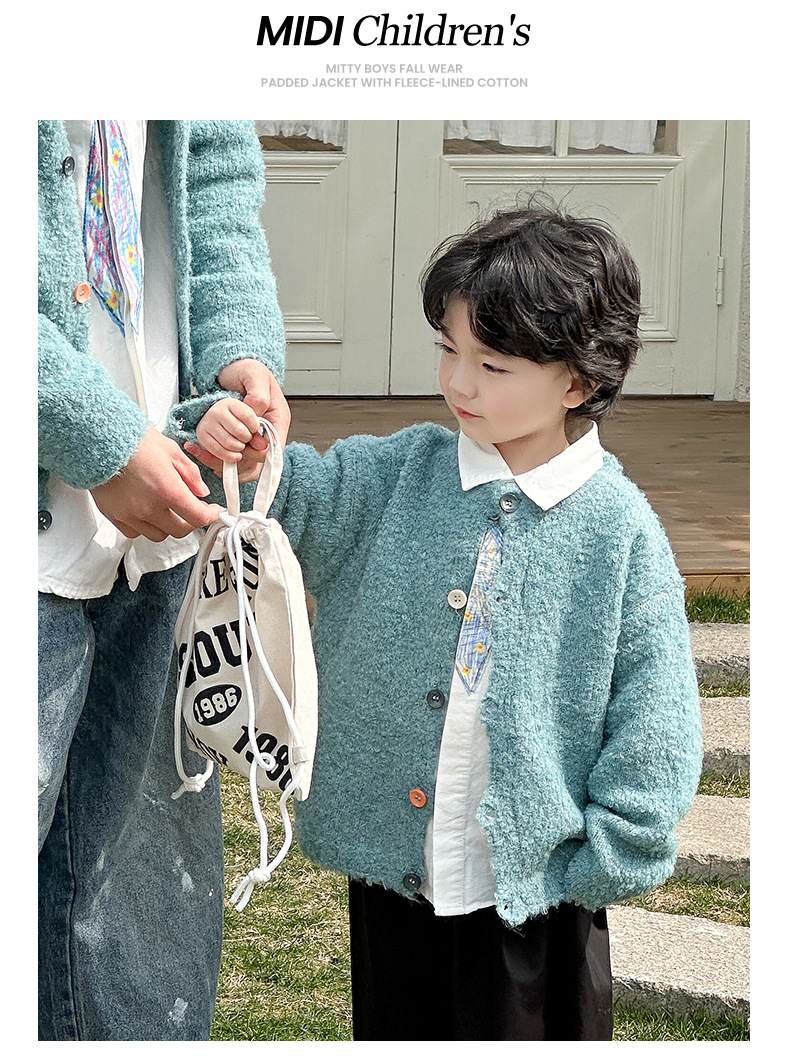 남아의 봄 카디건 스웨터 코트 중소 어린이 루프 울 원사 니트웨어 2025 새로운 어린이 아우터 탑스토어 가기