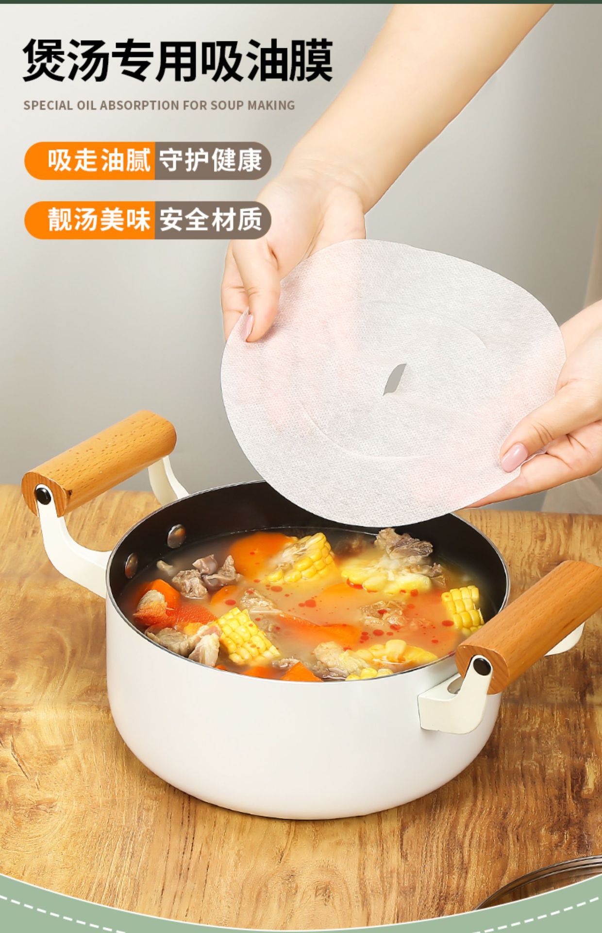 오일 흡수 종이 식품 특별 수프 삶은 스튜 튀김 수프 음료 수프 사용 오일 필터 종이 필름 오일 주방 요리 수프 음료 식품 등급스토어 가기