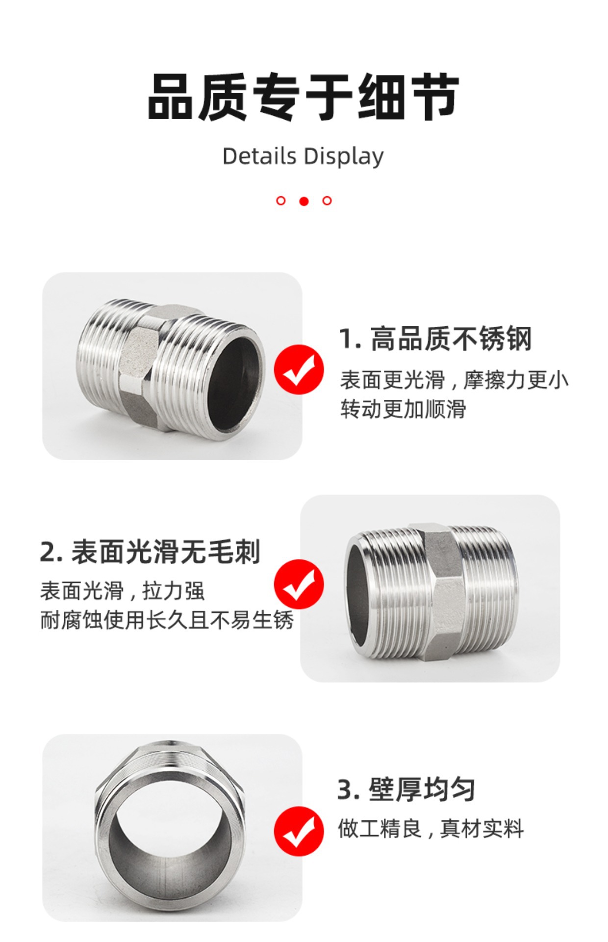 • 304 확장 육각형 외부 와이어 DN15*50mm(4포인트) 두꺼워짐