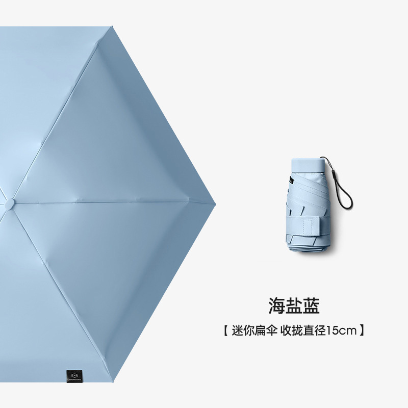 새로운 그라디언트 플랫 6 배 포켓 우산 블랙 고무 태양 보호 UV 보호 햇빛 휴대용 비 우산
