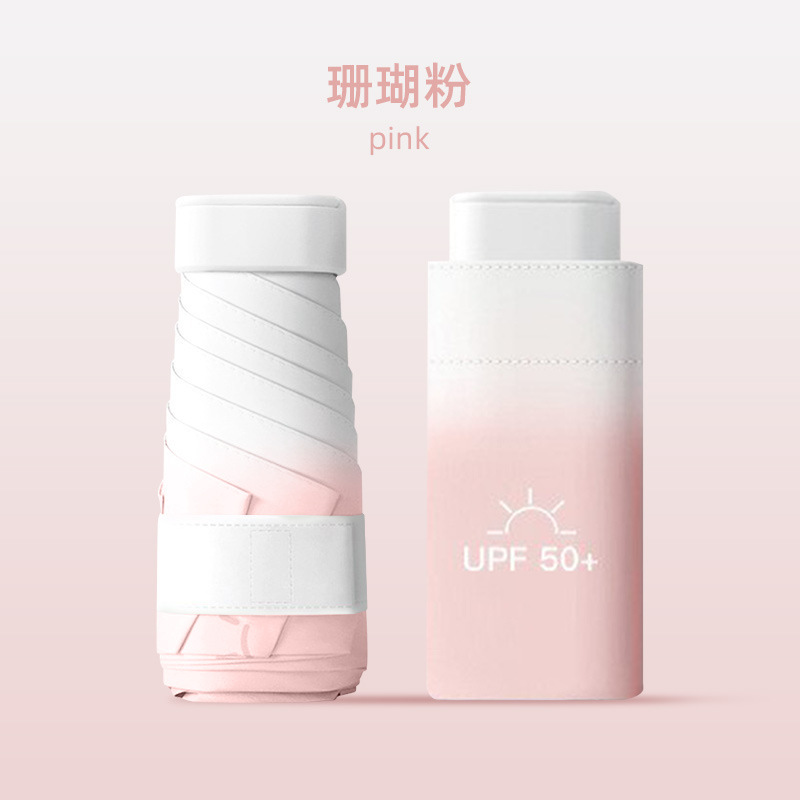 • ⭐코랄핑크-UPF50+ [핑크와 화이트 그라데이션 비닐카드우산, 휴대폰사이즈]