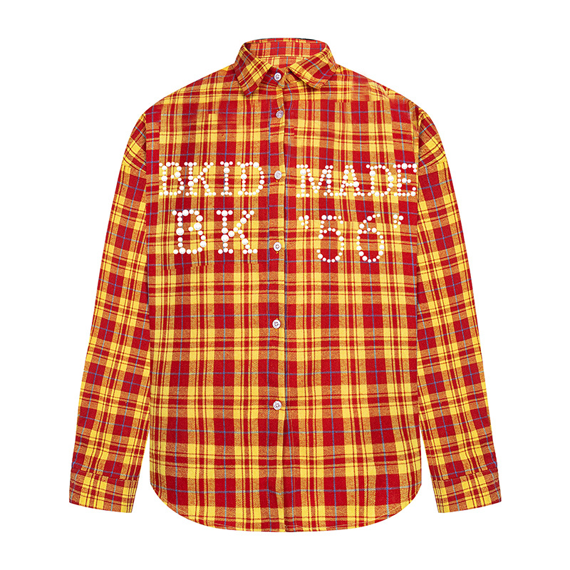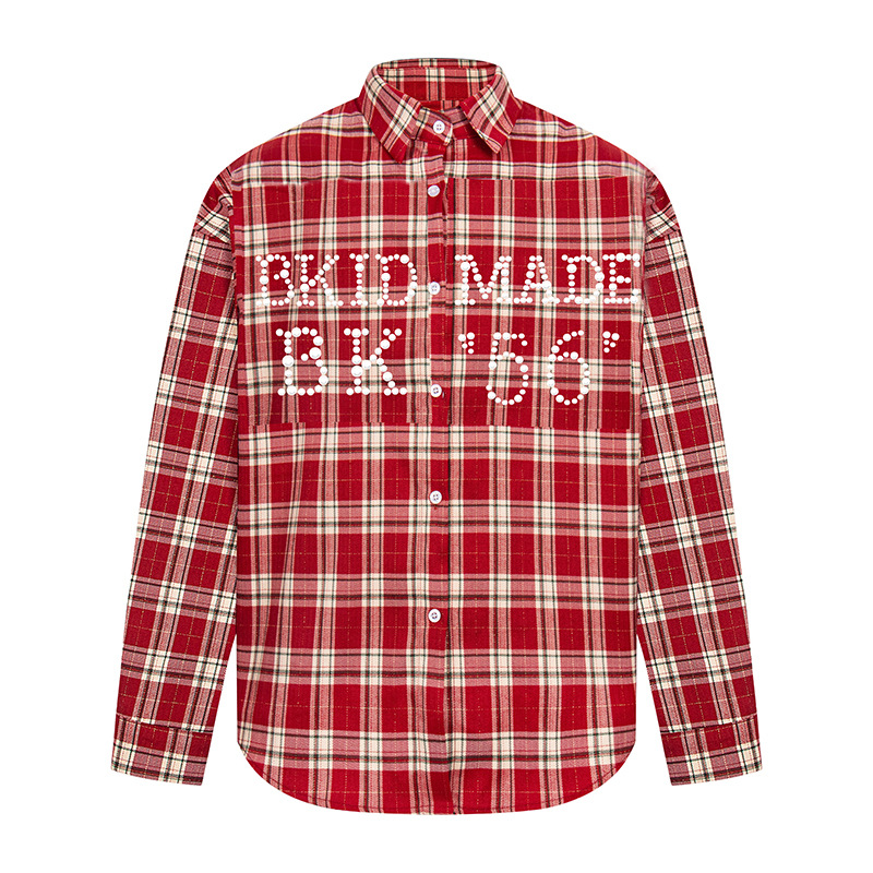 아메리칸 레트로 하이 스트리트 자수 레드 격자 무늬 긴 소매 셔츠 남성용 빈티지 셔츠 웨스트 코스트 커플 재킷스토어 가기
