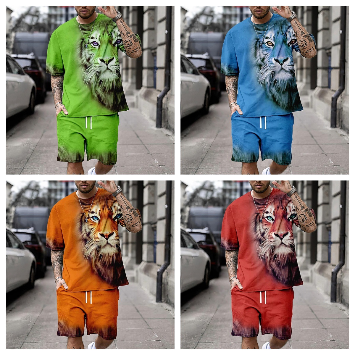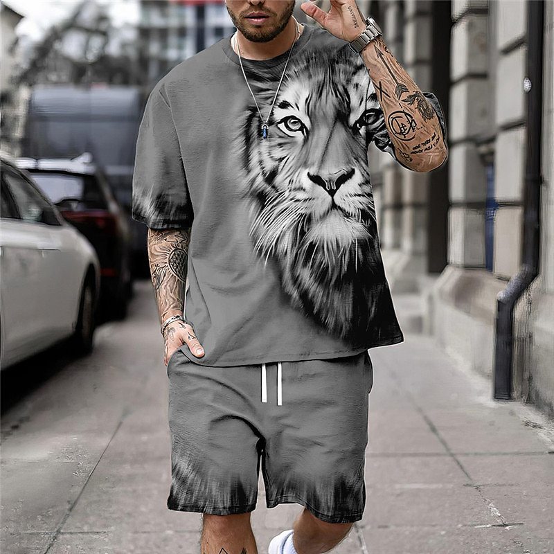 2025 유럽과 미국의 패션 레저 홈 세트 타이거 여름 3D 인쇄 스포츠 레저 휴가 티셔츠 반바지 커버