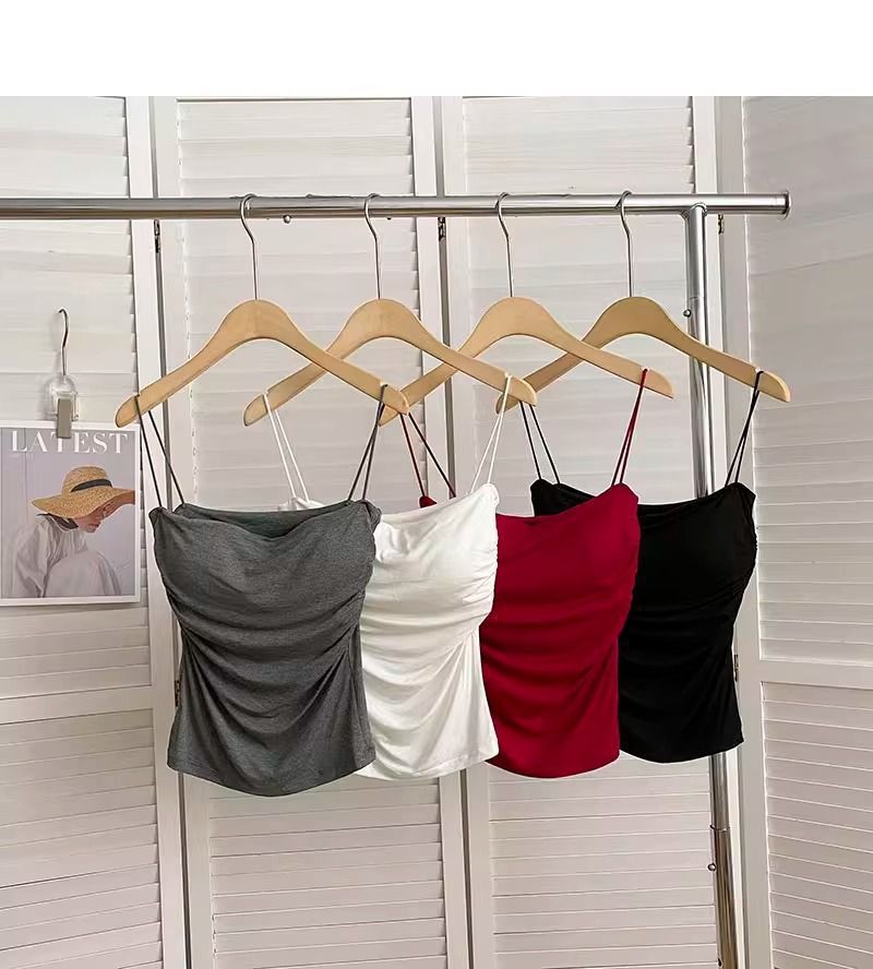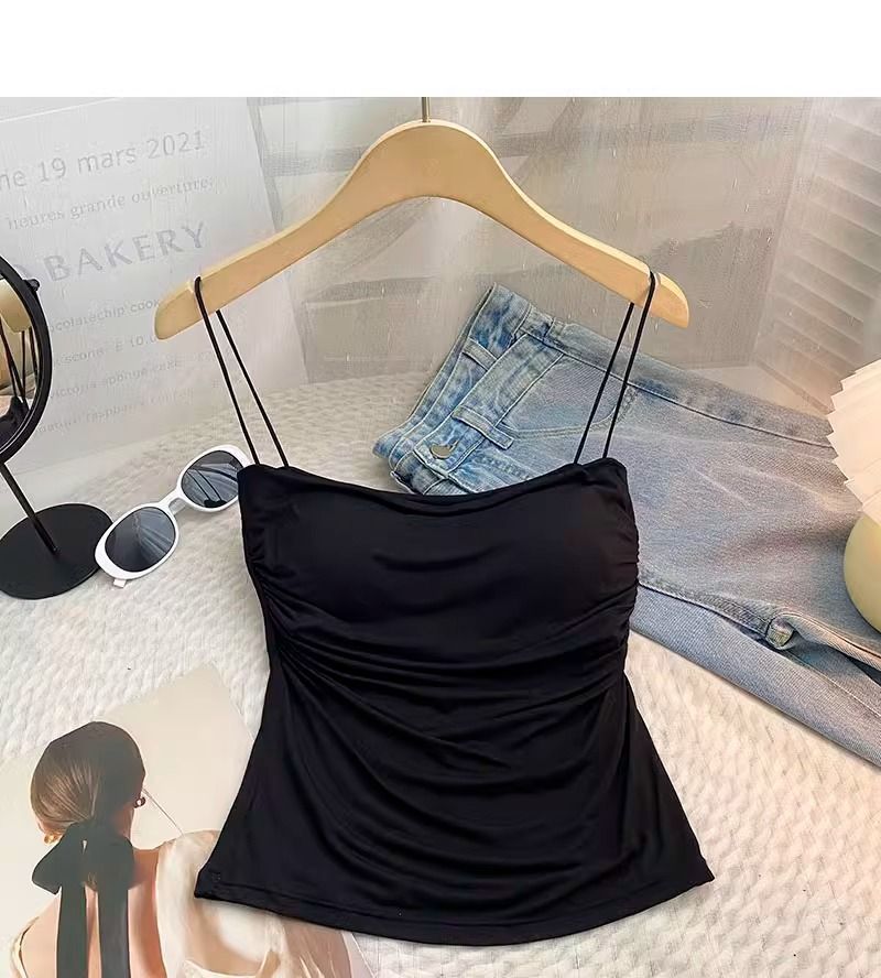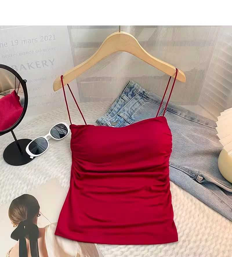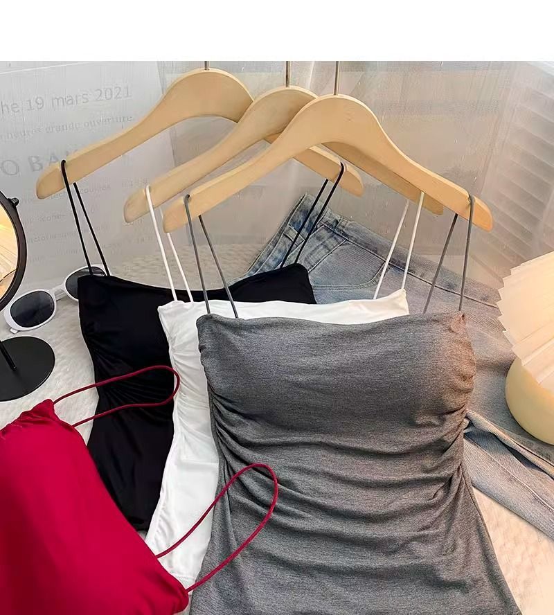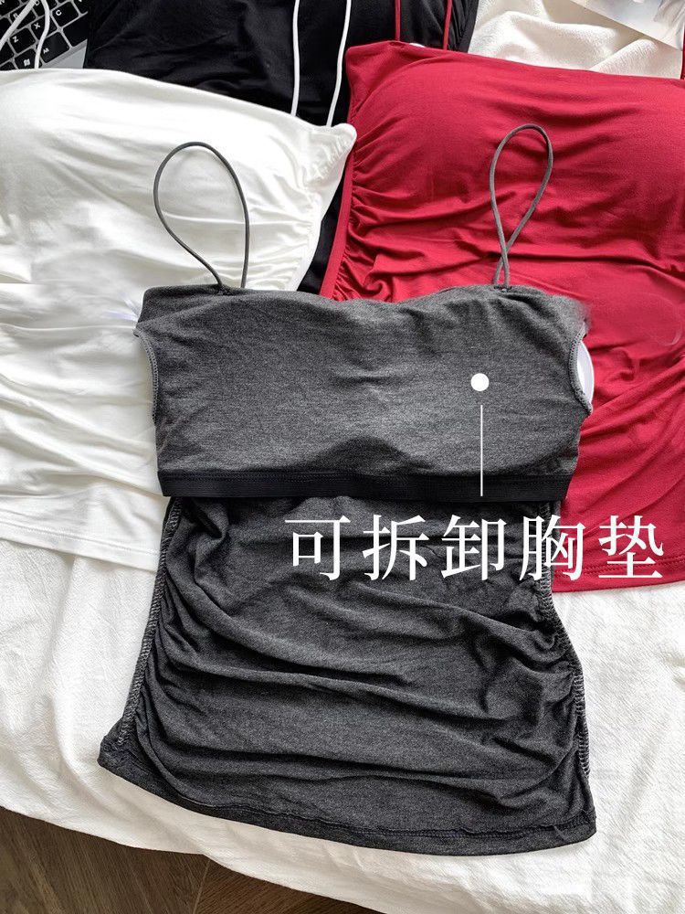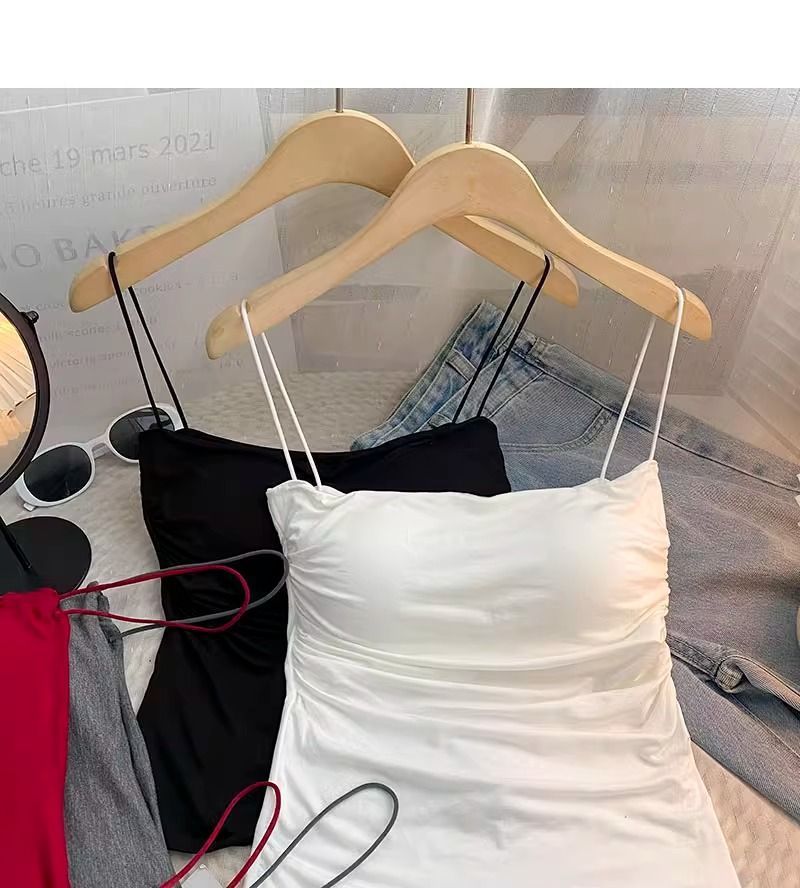 百褶吊带背心带胸垫抹胸式美背性感一体式辣妹无钢圈内搭打底上衣
