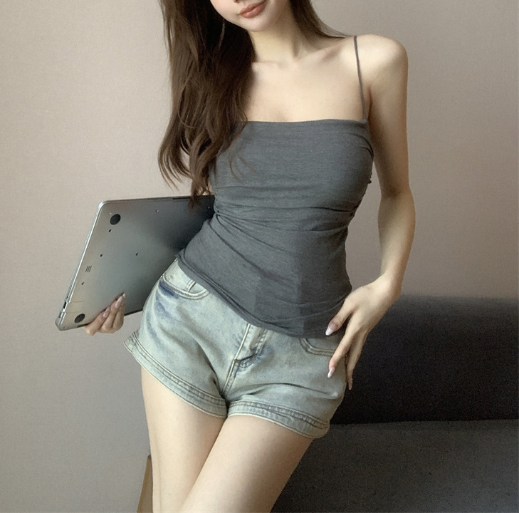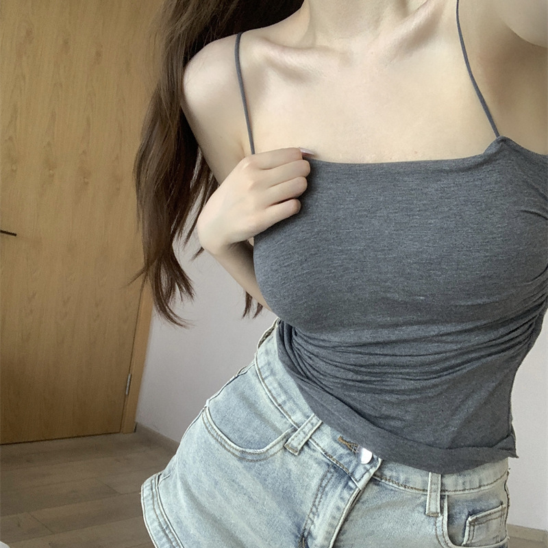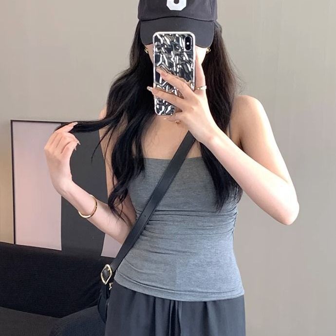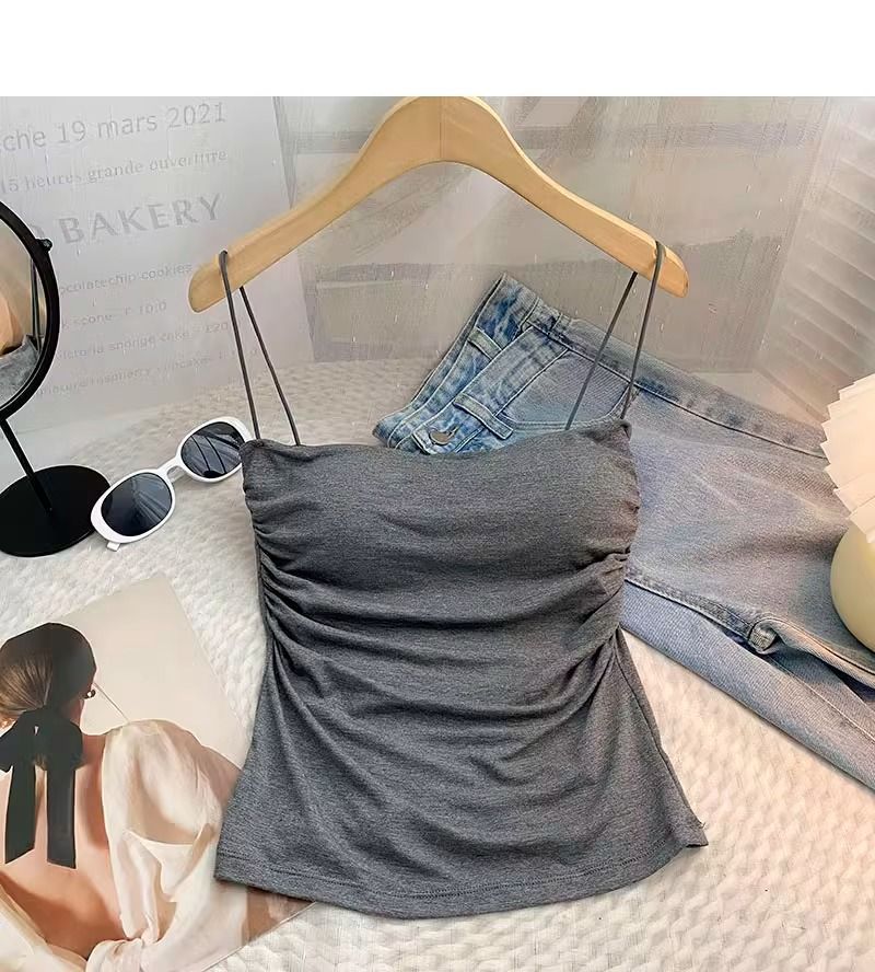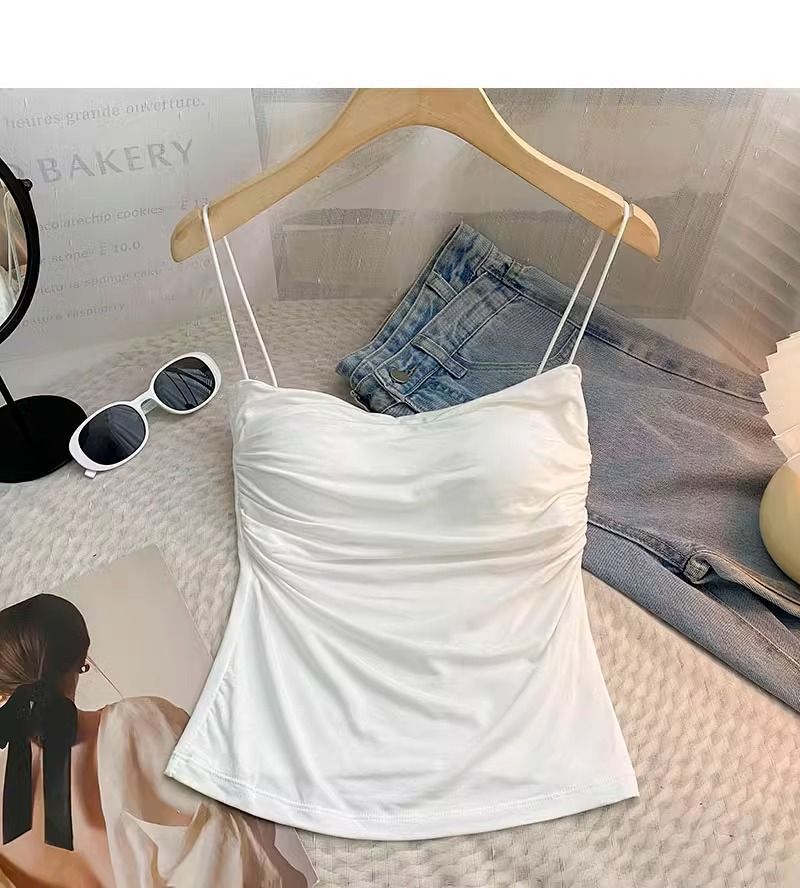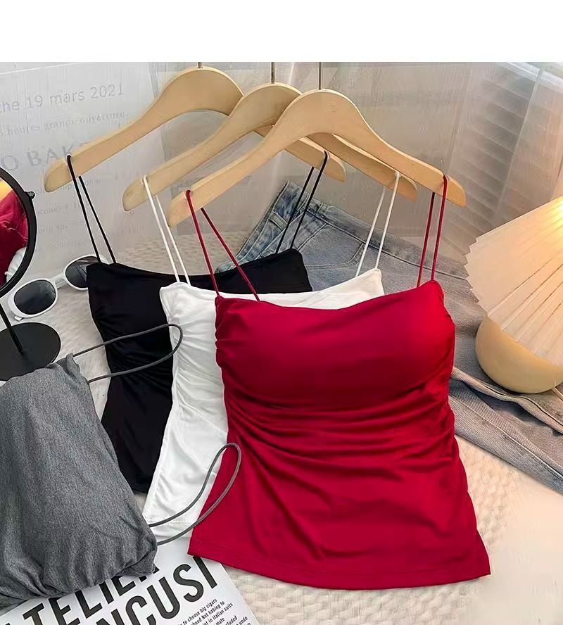 百褶吊带背心带胸垫抹胸式美背性感一体式辣妹无钢圈内搭打底上衣