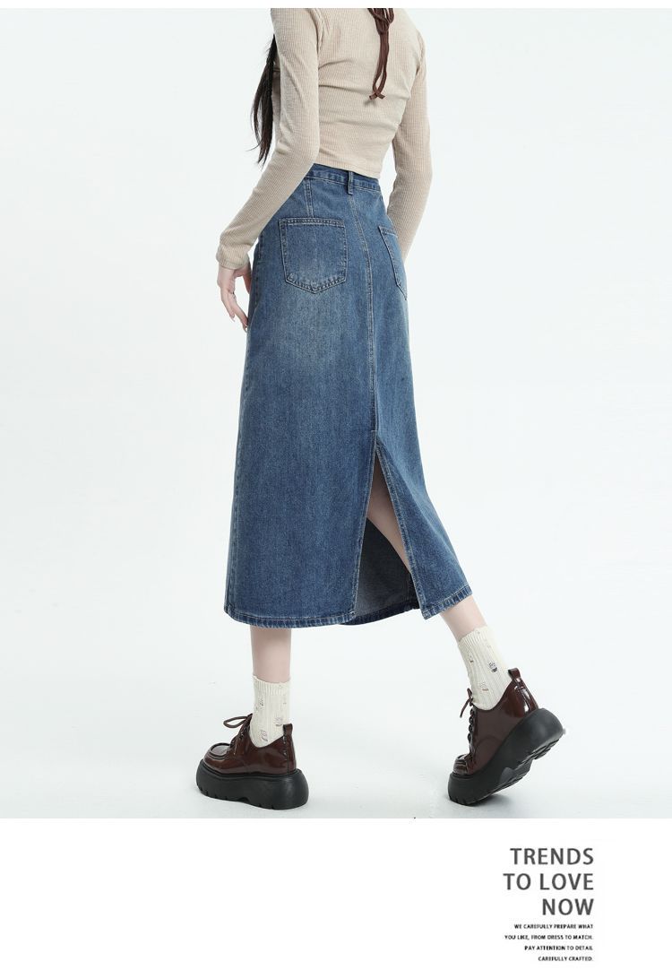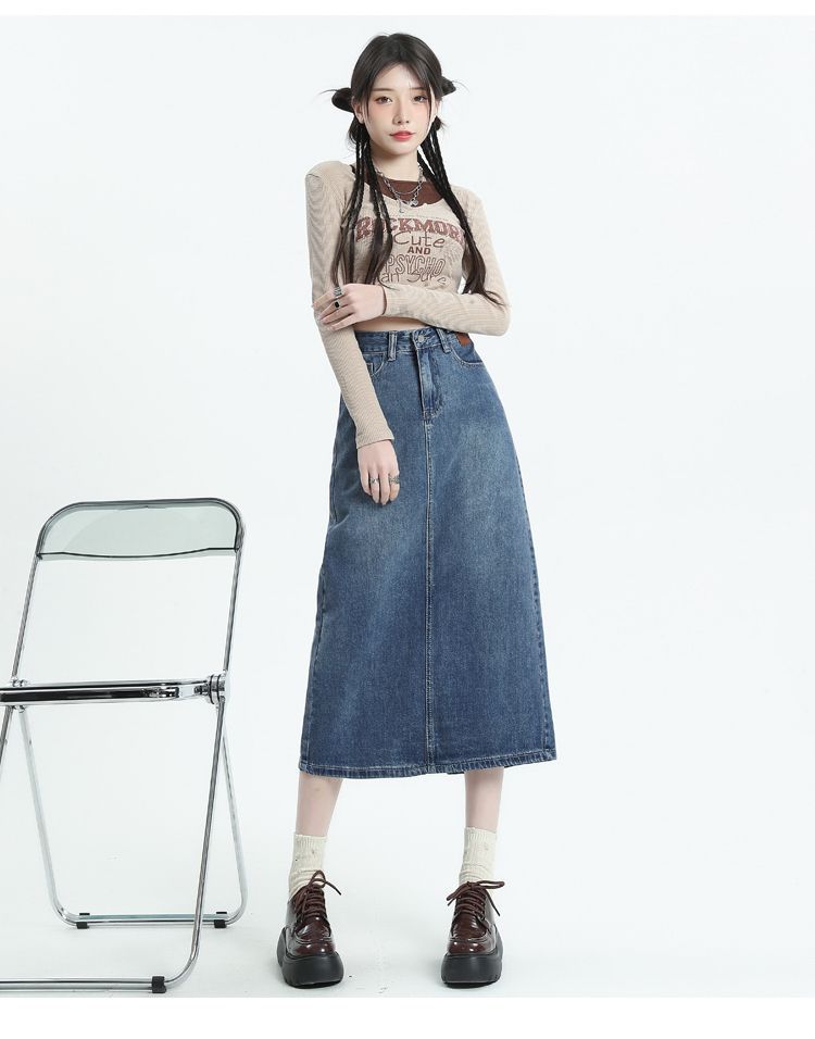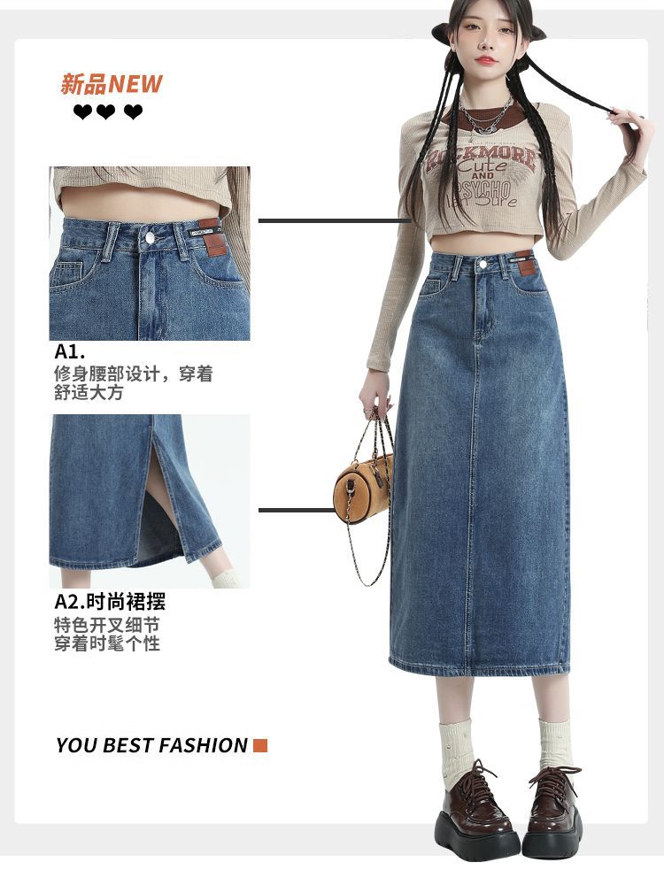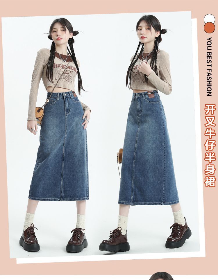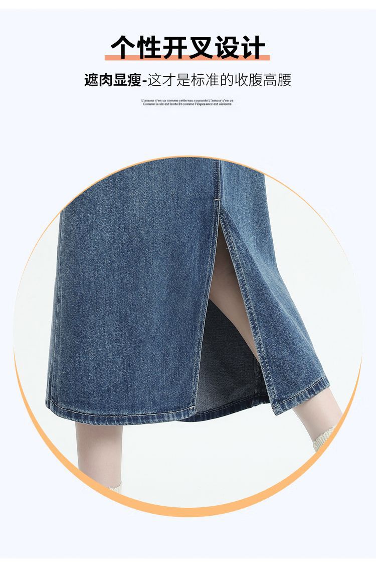 데님 치마 여자 2025 봄 새로운 높은 허리 분할 A-라인 스커트 봄과 가을 중견 레트로 힙합 스커트스토어 가기