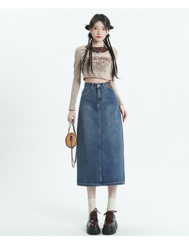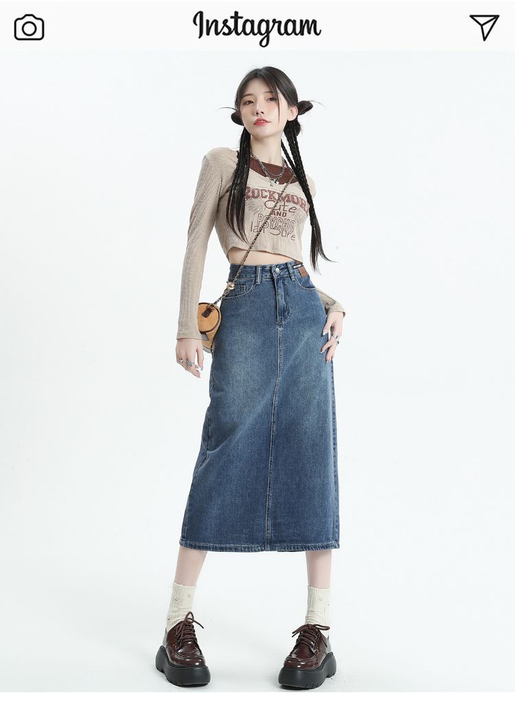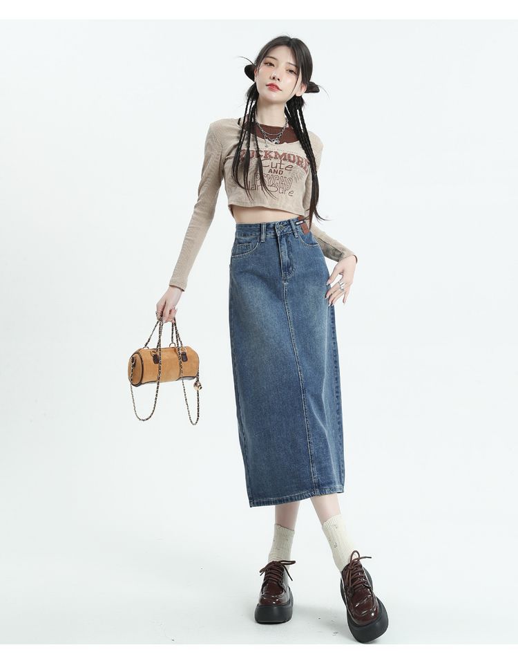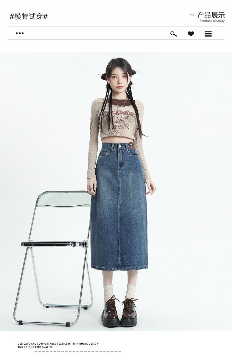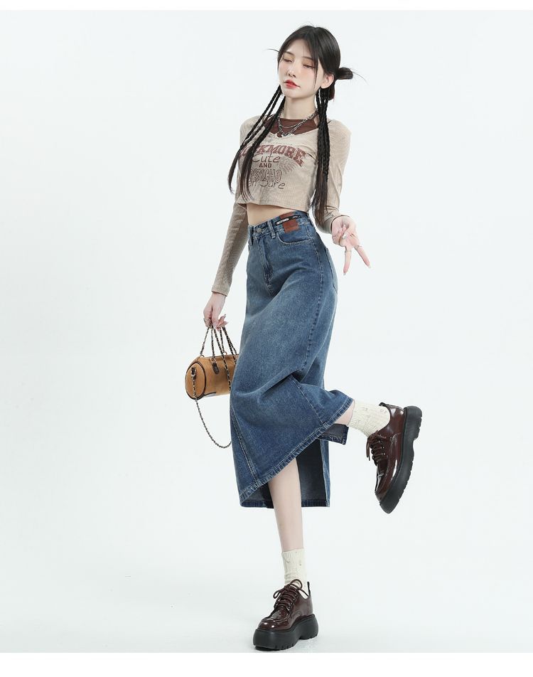 데님 치마 여자 2025 봄 새로운 높은 허리 분할 A-라인 스커트 봄과 가을 중견 레트로 힙합 스커트스토어 가기