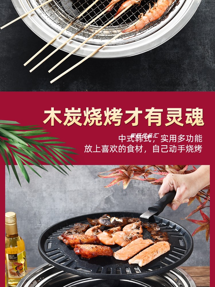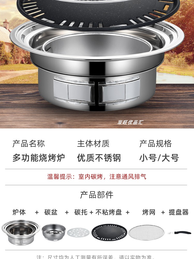&W 바베큐 숯야외 상업용 붙지 않는 바베큐 스토브 한국식 가정용 주변 스토브 차 요리 휴대용 숯불 바베큐
