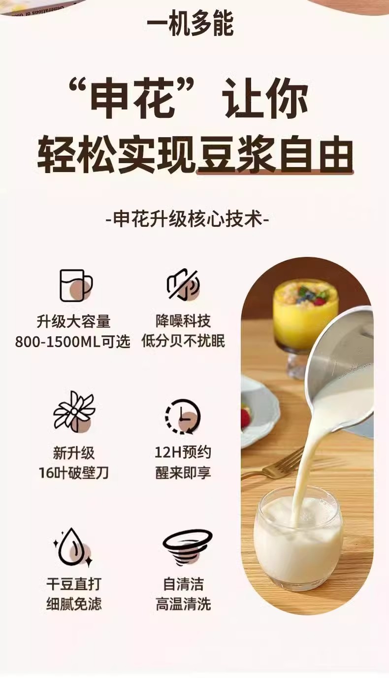 Shenhua 새로운 대두 우유 기계 지능형 홈 벽 속보 기계 예약 다기능 드라이 콩 직접 세척 무료, 끓는 무료 및 여과 없음스토어 가기