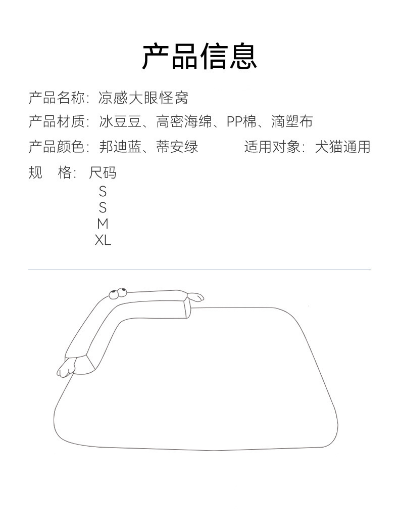 跨境包邮大眼怪兽凉感小型犬狗窝宠物床冰感宠物狗床猫窝代发狗垫