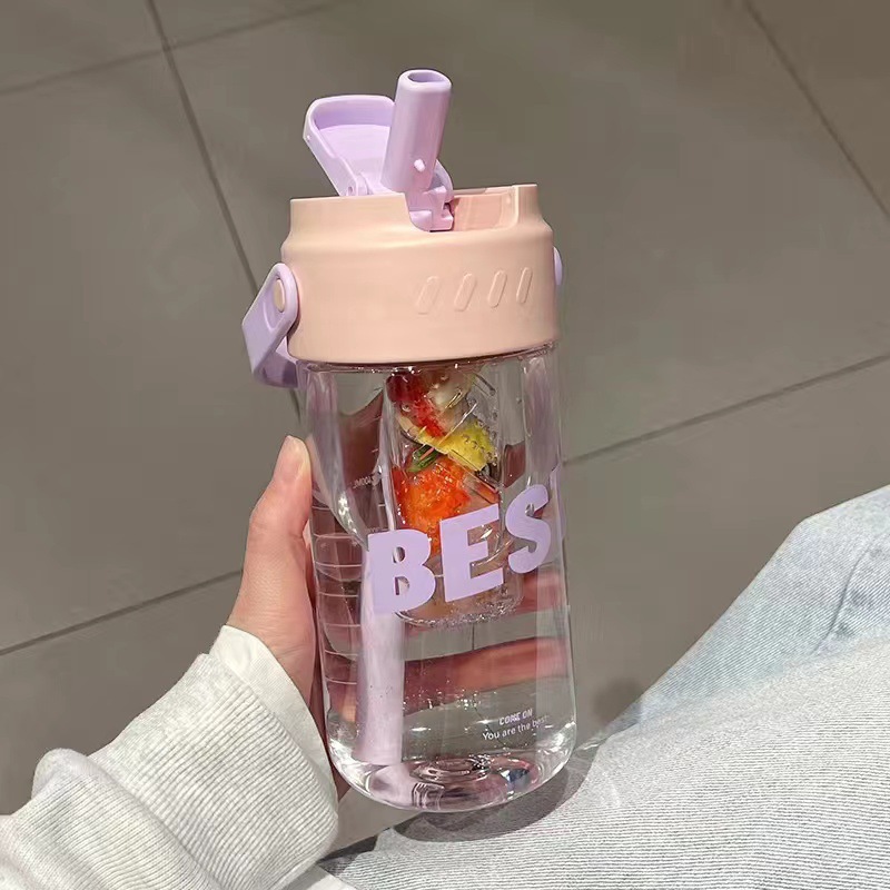 밀짚 컵 학생 꽃 티 컵 물 컵 소녀 핸디 컵 휴대용 밀짚 플라스틱 컵 대용량 여름 컵