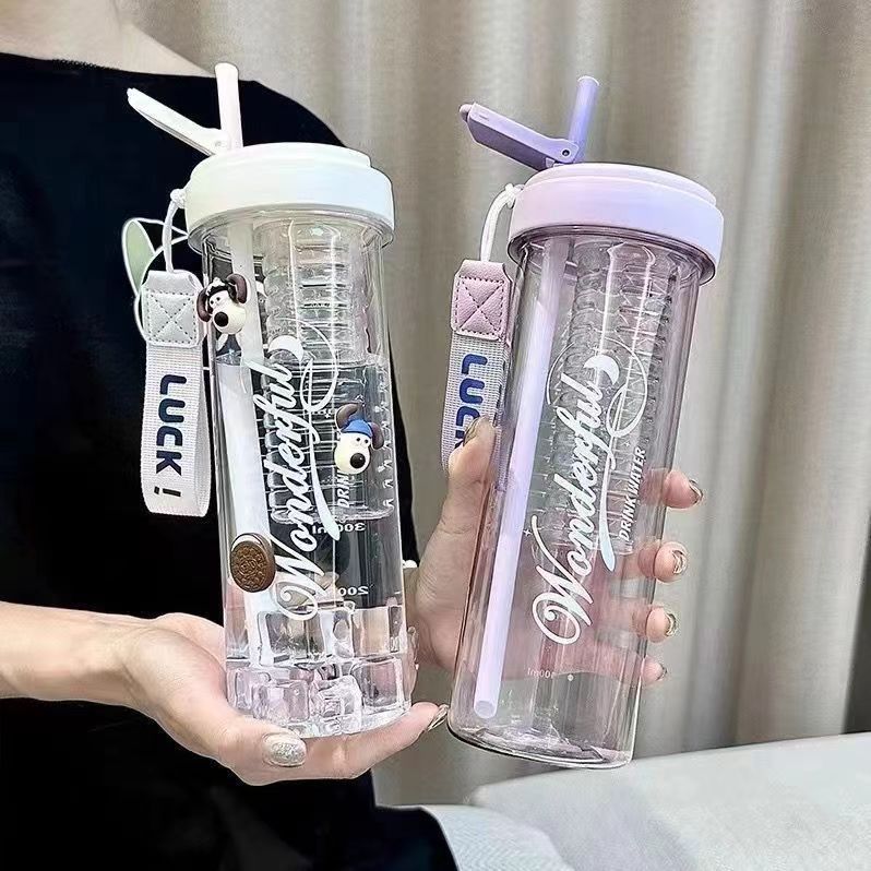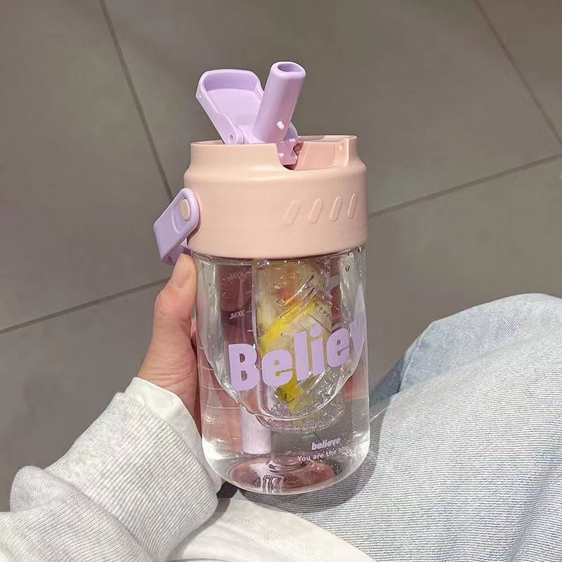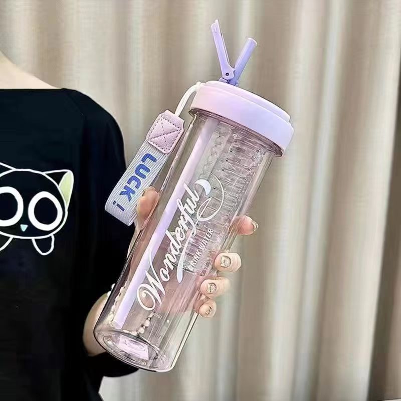 밀짚 컵 학생 꽃 티 컵 물 컵 소녀 핸디 컵 휴대용 밀짚 플라스틱 컵 대용량 여름 컵스토어 가기
