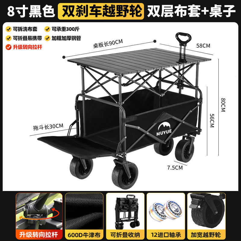 • 블랙 [이중 두꺼운 옥스포드 천] - 대형 / 8inch 오프로드 휠 / 더블 브레이크 / 티핑 버킷 + 블랙 테이블