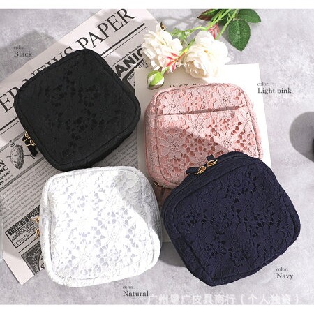 롯데 새로운 레이스 패턴 나일론 방수 화장품 가방 휴대용 지퍼 심플 스퀘어 화장품 가방 보관 가방