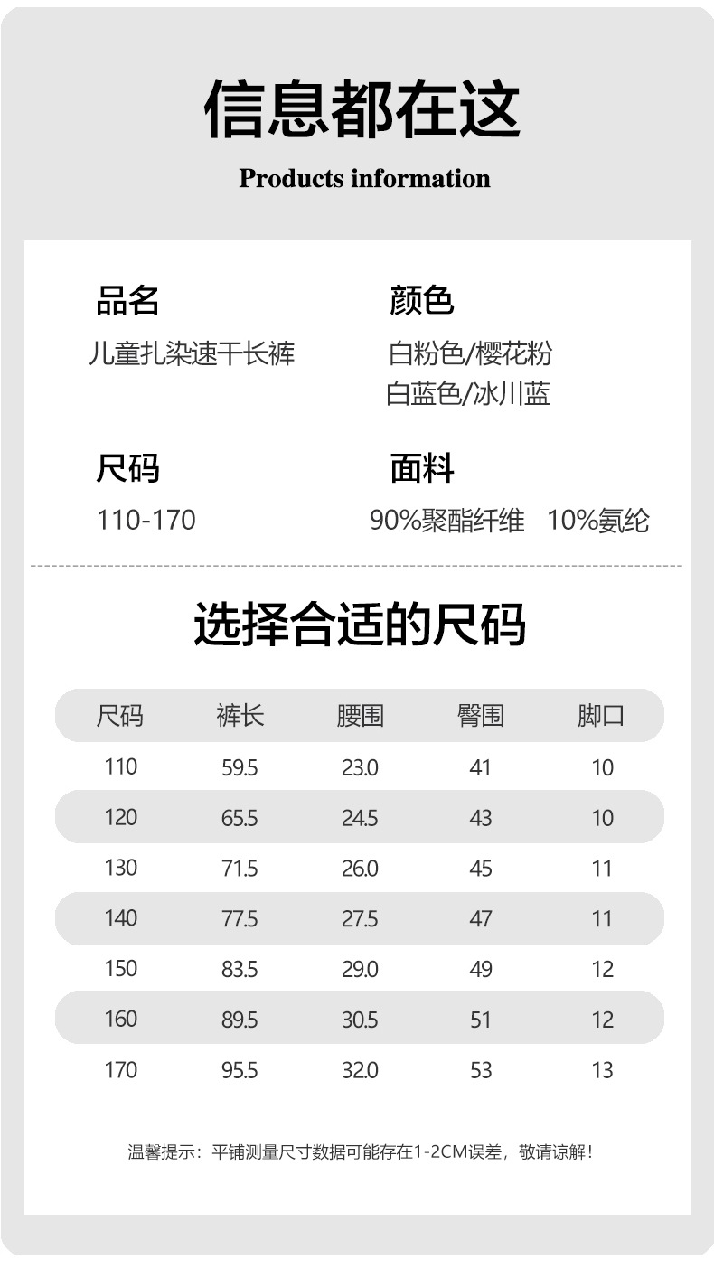 아동용 모기 방지 바지 카테고리 A 새로운 스타일 여아 스포츠 속건 바지 여름 얇은 소년 아이스 실크 타이 염색 레깅스 바지스토어 가기