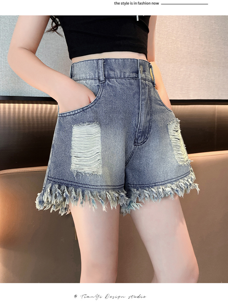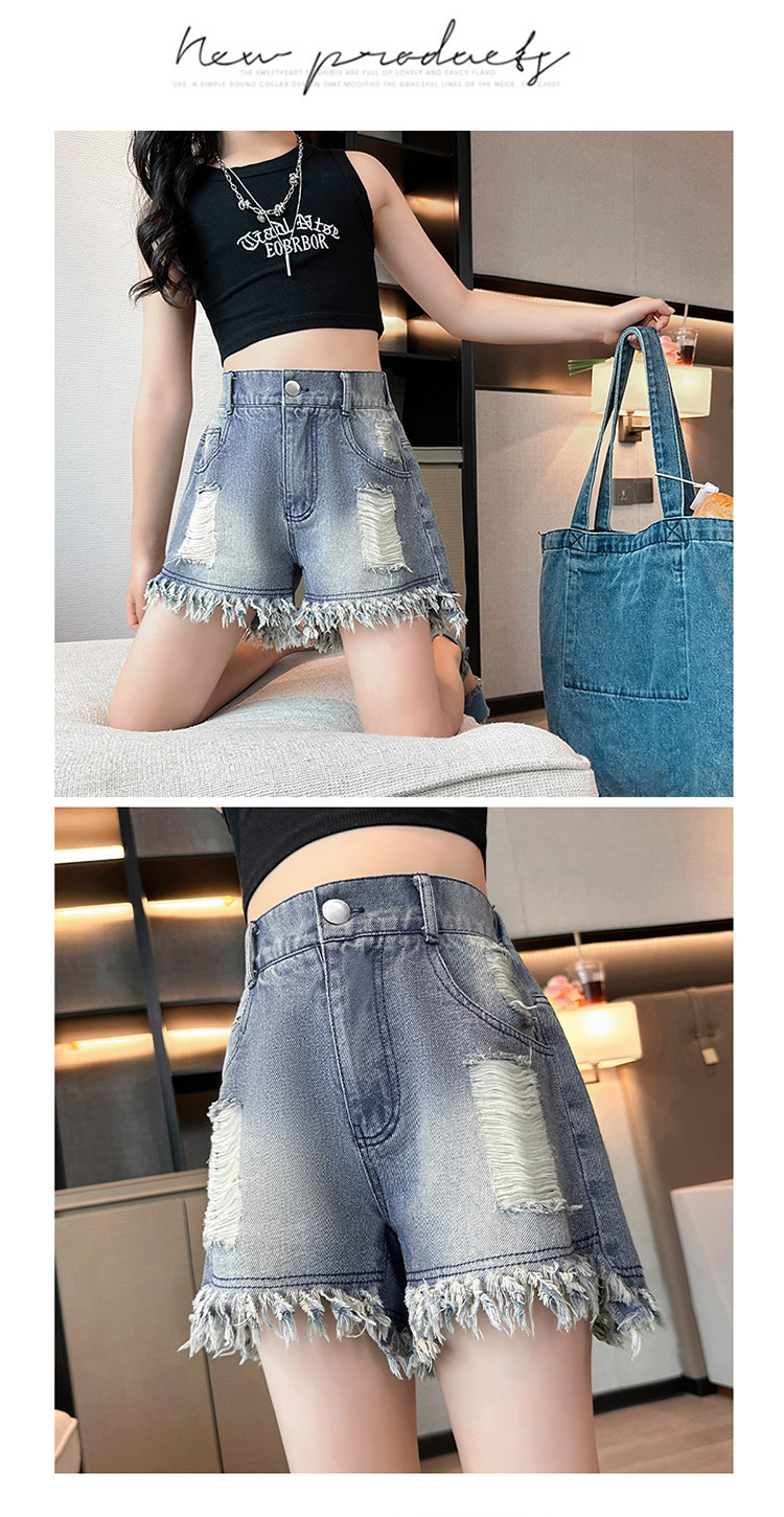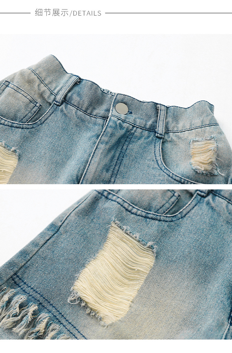 여자 데님 반바지 소녀 큰 어린이 2025 유행 인터넷 인기 드레스 랩 청바지 짧은 바지스토어 가기