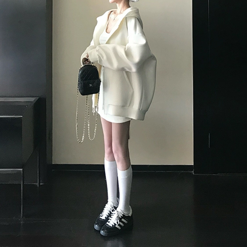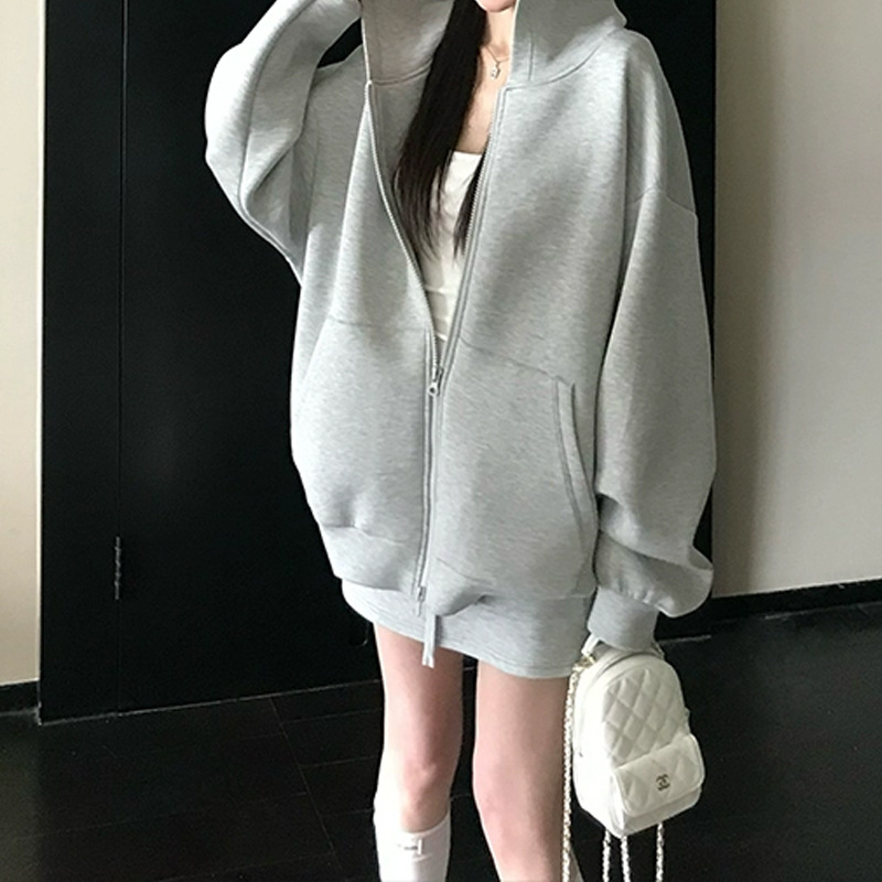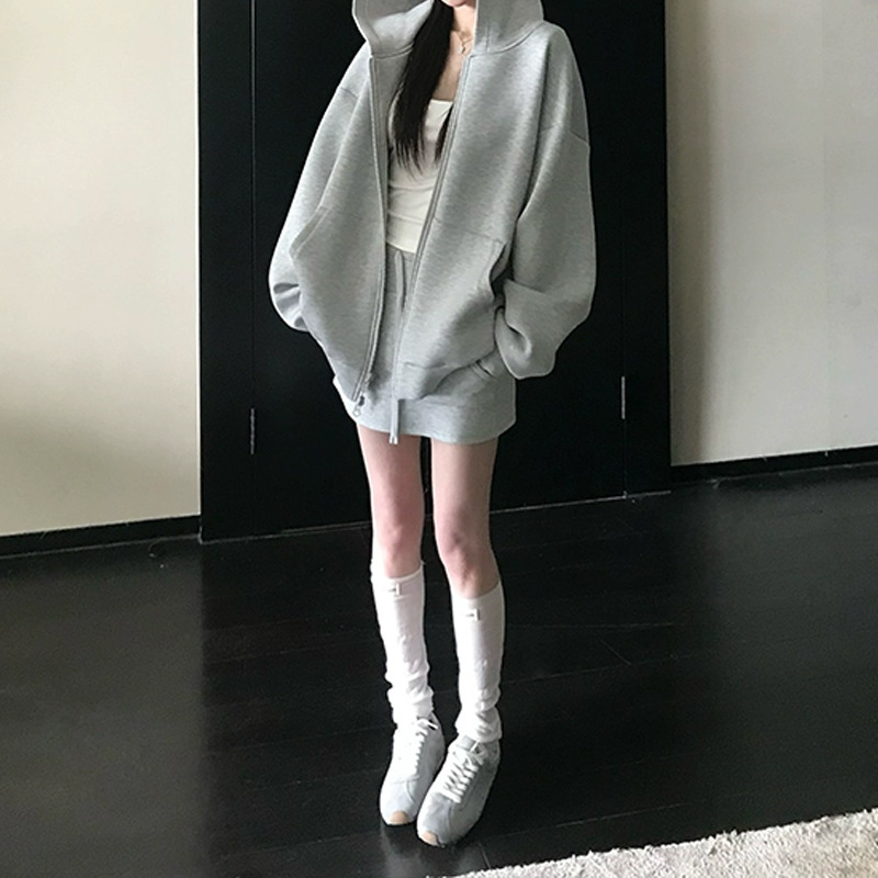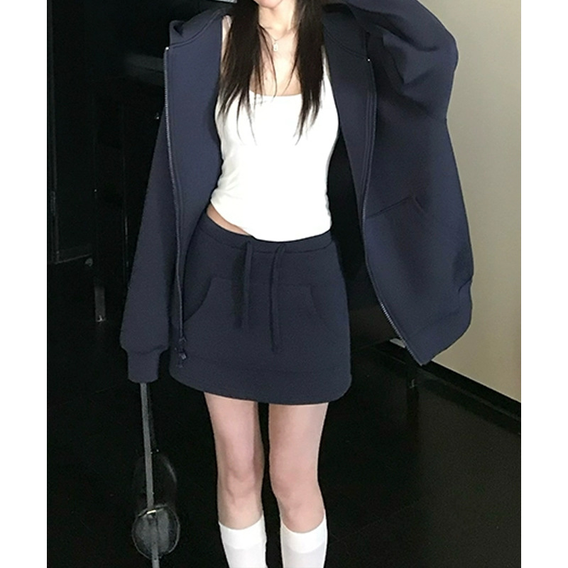 진치안 재단 편안한 350G 후드 에어 레이어 느슨한 프로필 착용 재킷 스커트 세트 여성 2025 새로운