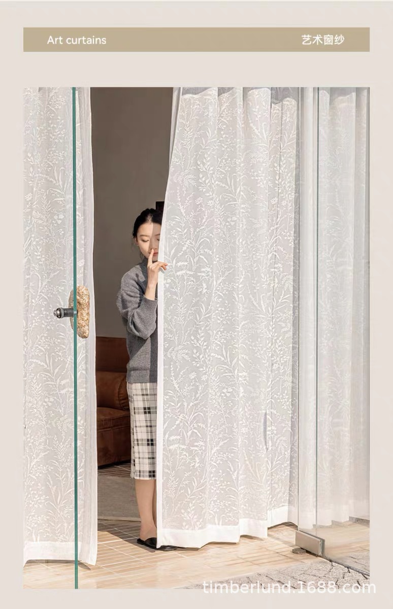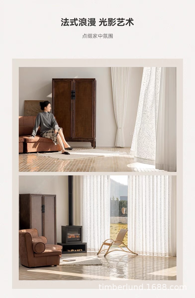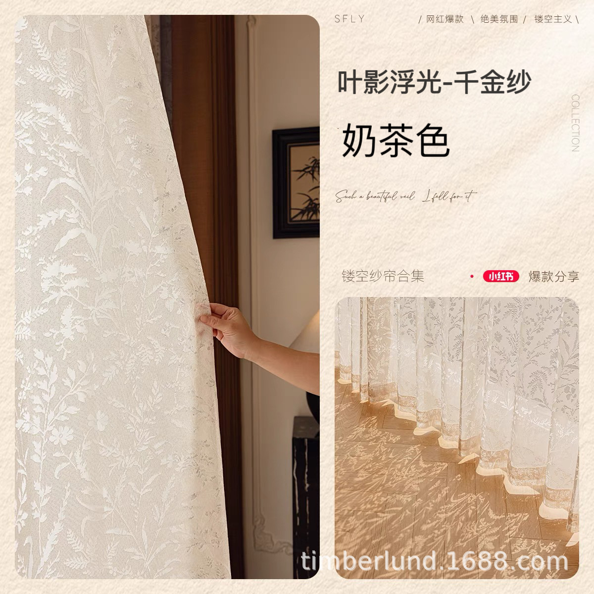 프랑스 낭만적 인 거즈 커튼 베이 창 거실 발코니 창 화면 투명 부러운 빛 고급 고급 중공 문 지점 그림자스토어 가기