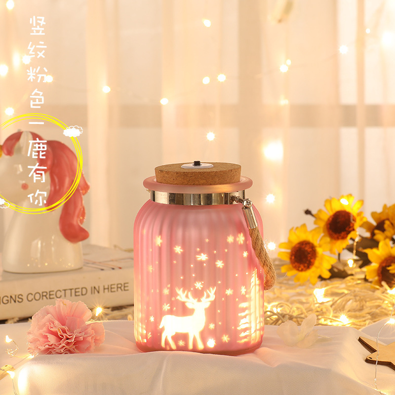 • 둥근 분홍색 사슴 따뜻한 흰색 램프