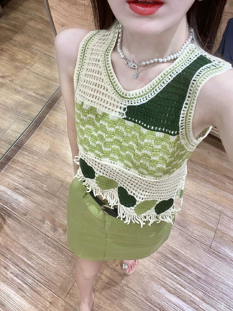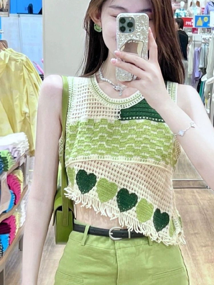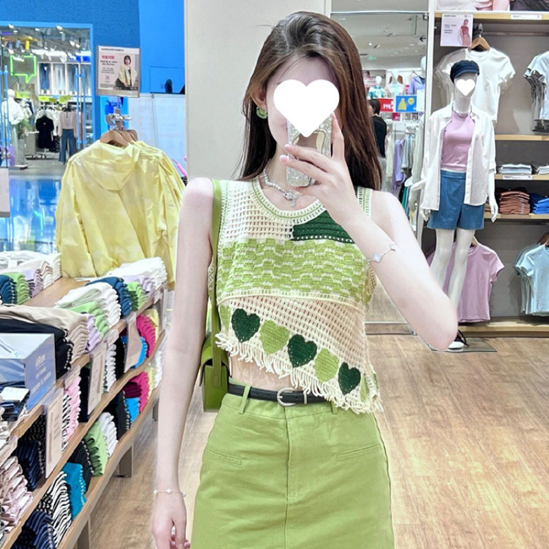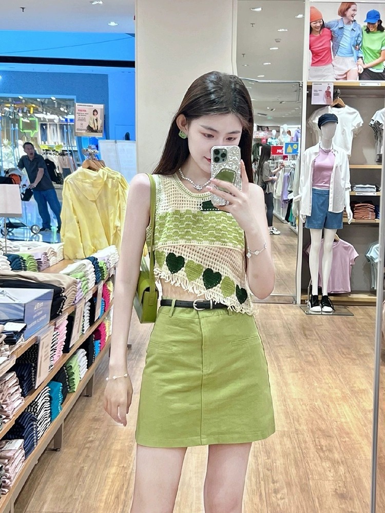 작은 인터넷 연예인 기질 여신 팬 녹색 조끼 짧은 치마 투피스 세트 여성 여름을 입고 도파민 소녀스토어 가기