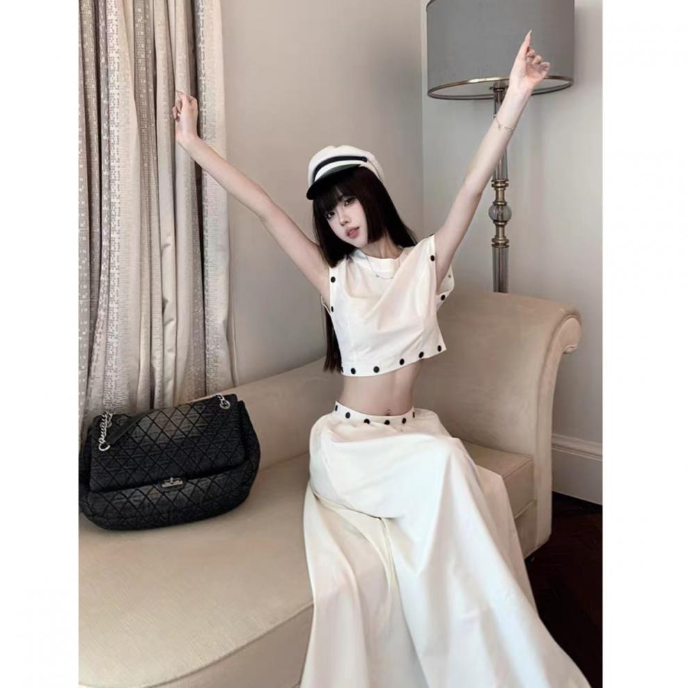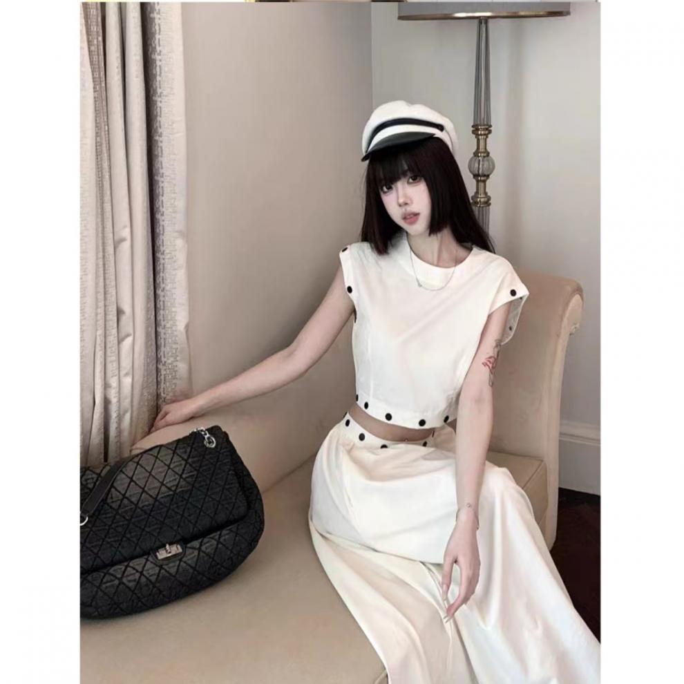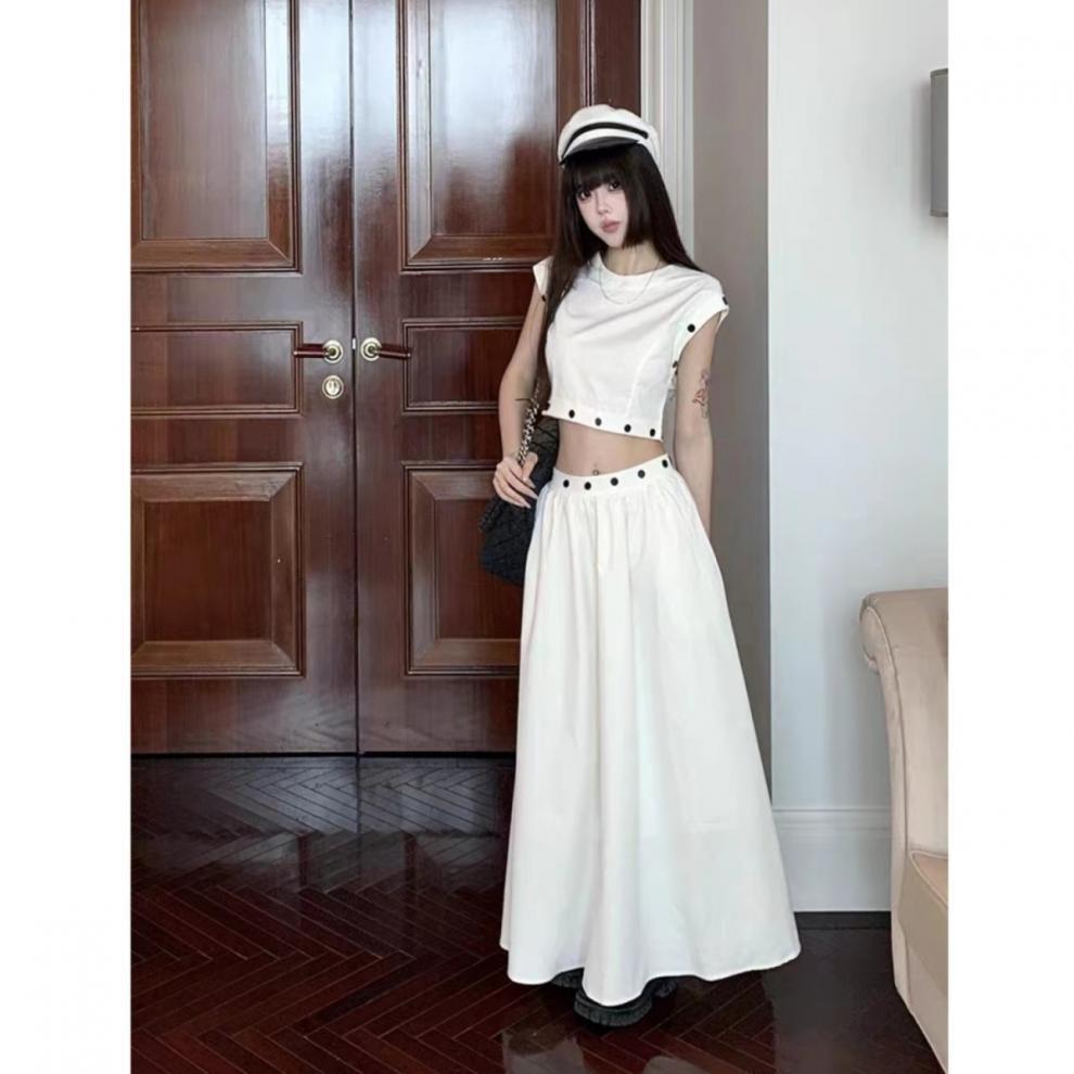 부드러운 스타일 유행 세트 민소매 내부 조끼 여성 여름 높은 허리 A 라인 스커트 싱글/투피스 세트