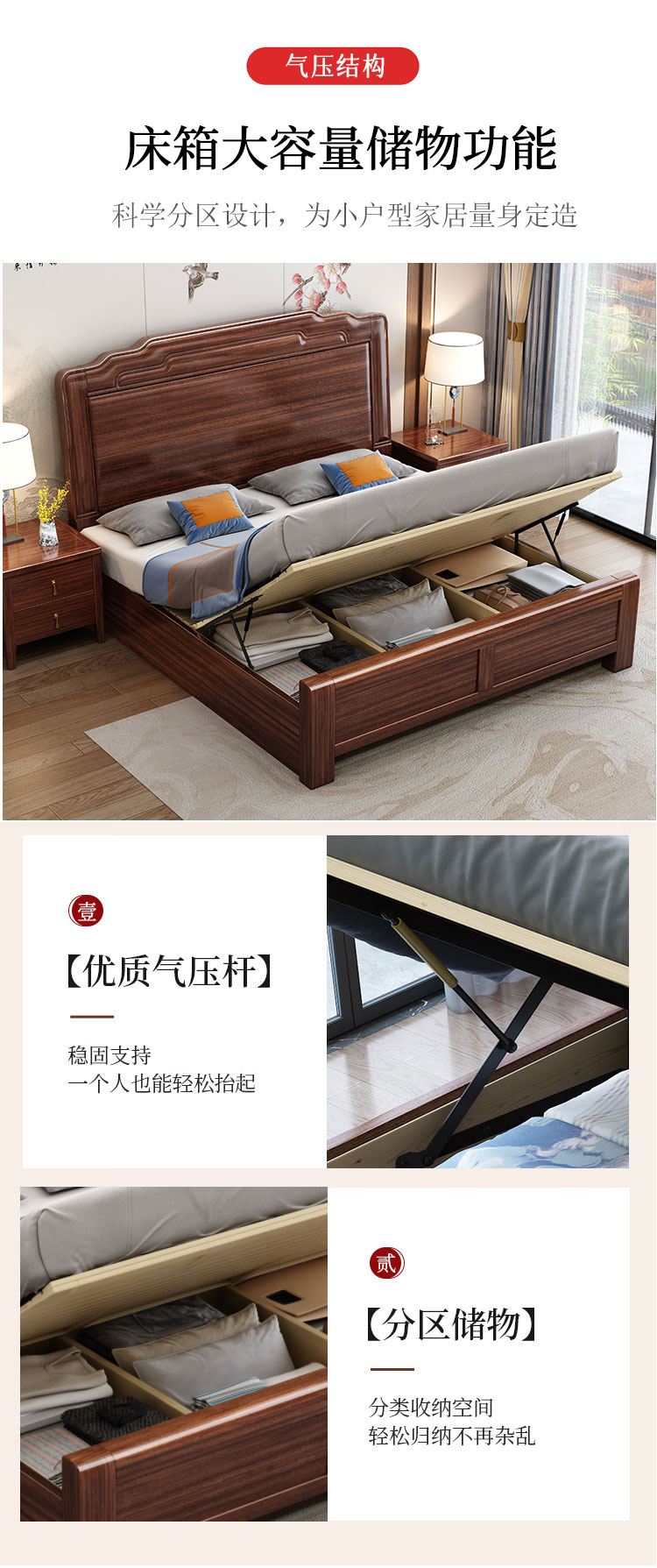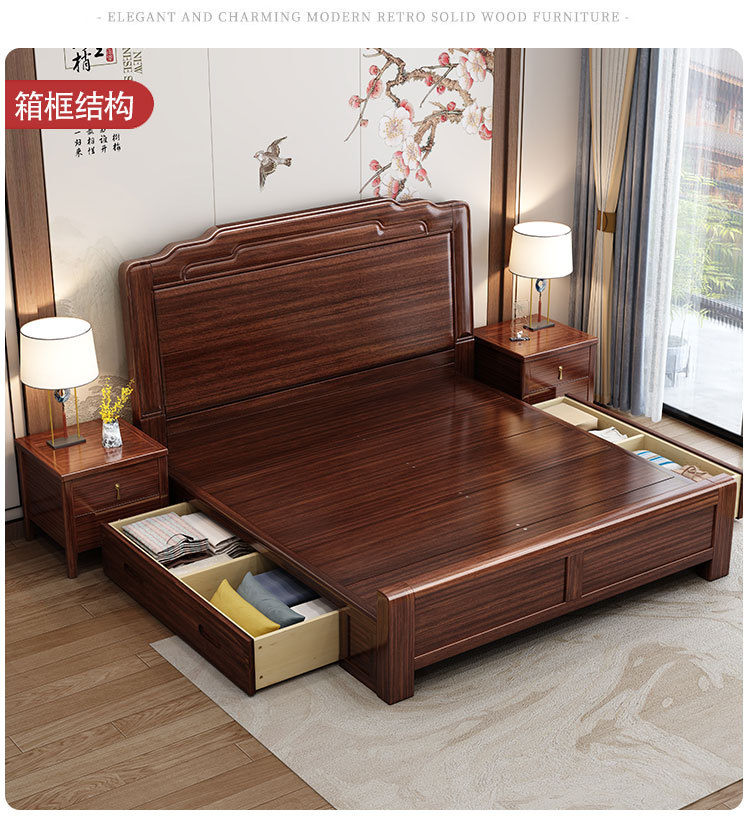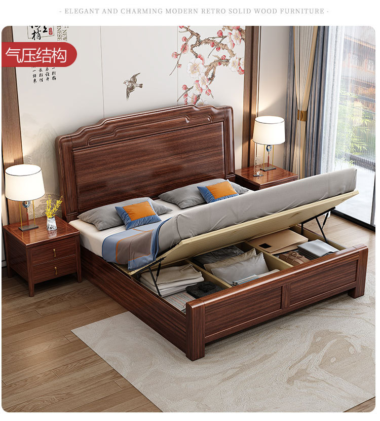 새로운 중국 스타일 에보니 나무 단단한 나무 침대 현대 빛 럭셔리 1.8 m 더블 마스터 침실 작은 아파트 1.5 높은 상자 저장 침대