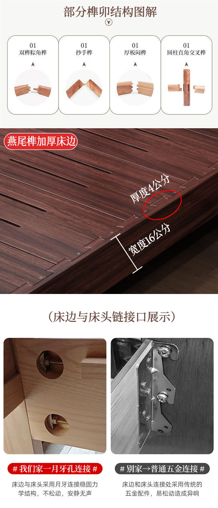 • 1.8* 2m 침대; 장붓구멍과 장부 구조