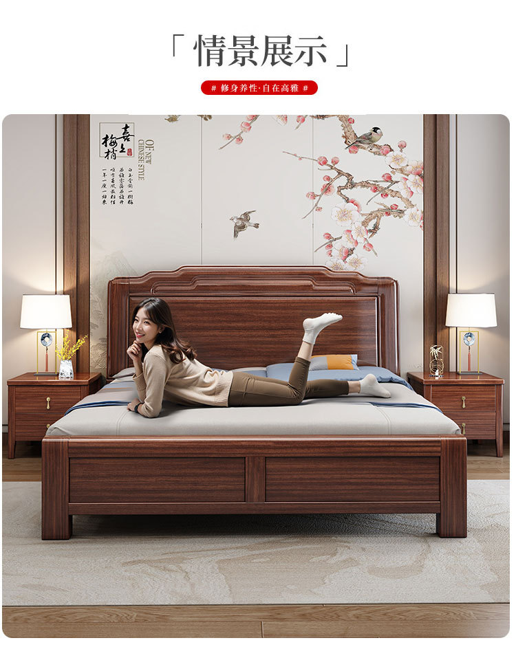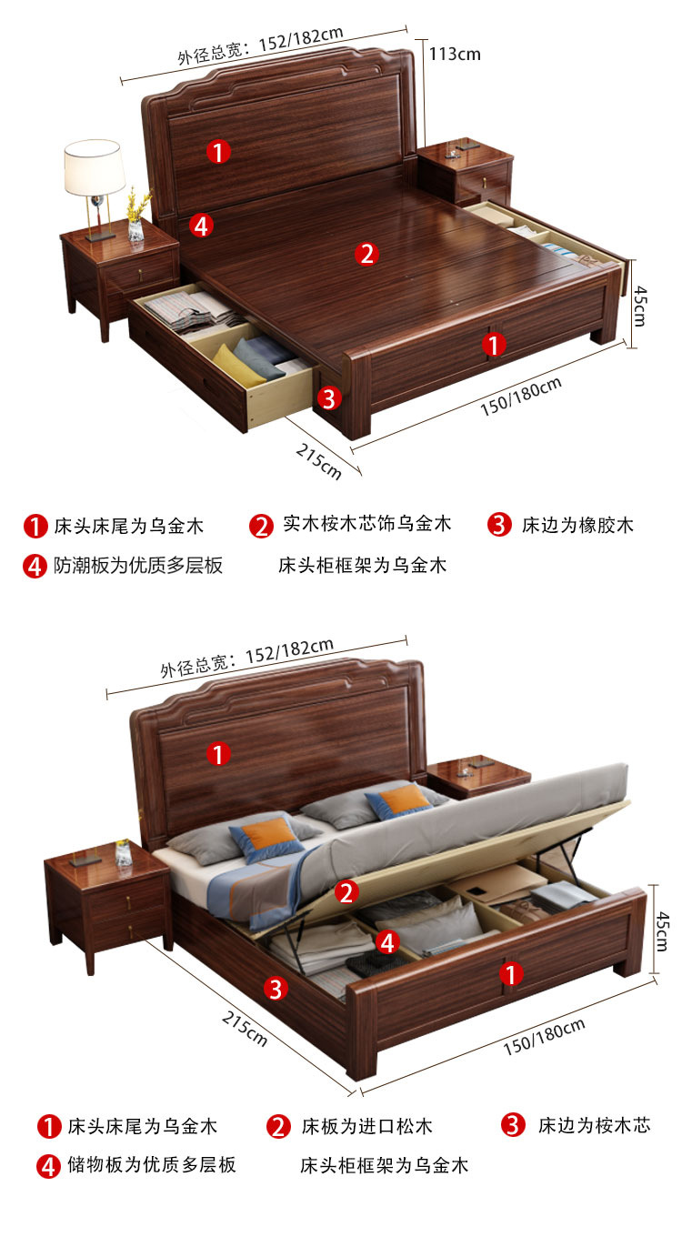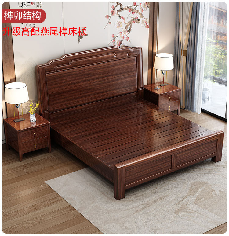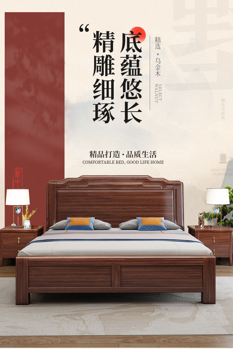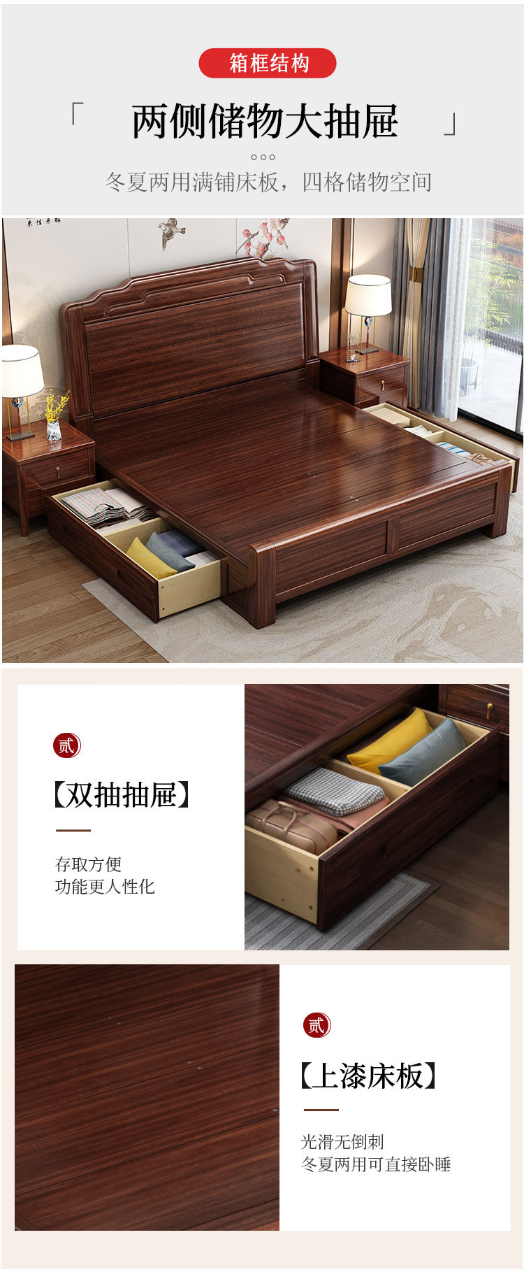 새로운 중국 스타일 에보니 나무 단단한 나무 침대 현대 빛 럭셔리 1.8 m 더블 마스터 침실 작은 아파트 1.5 높은 상자 저장 침대스토어 가기