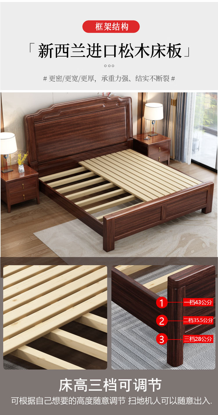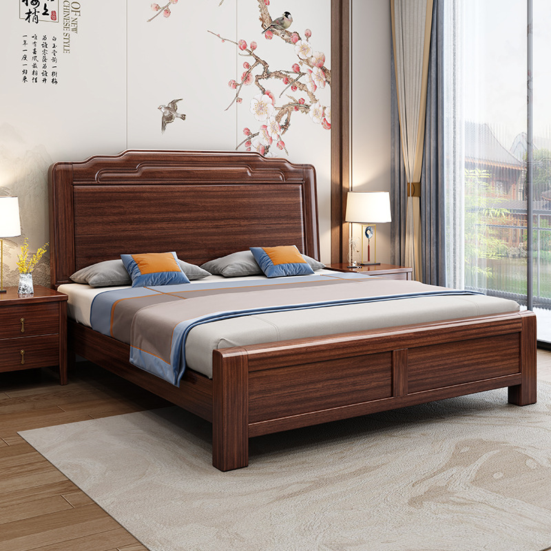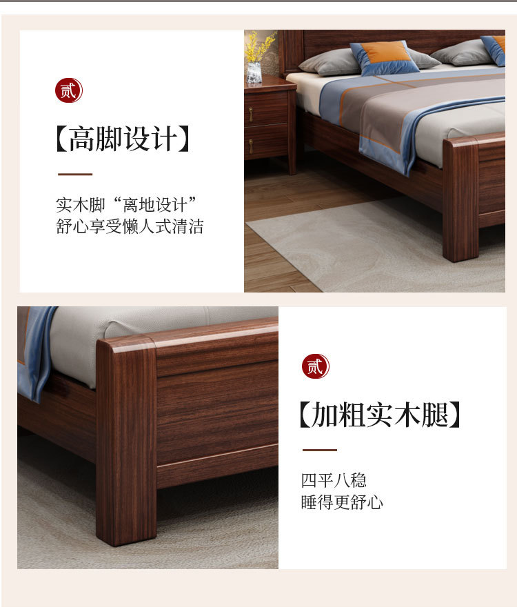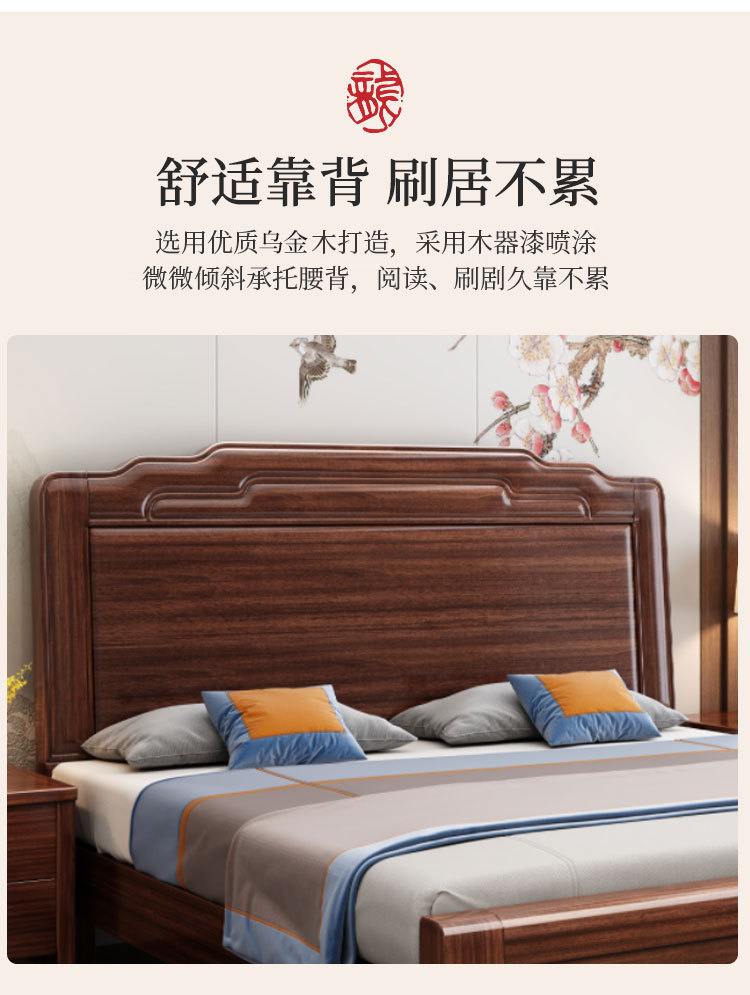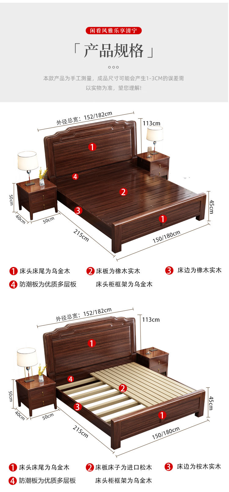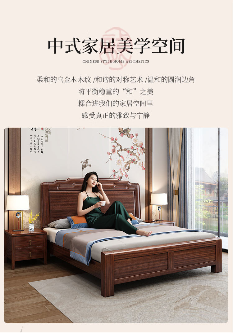 새로운 중국 스타일 에보니 나무 단단한 나무 침대 현대 빛 럭셔리 1.8 m 더블 마스터 침실 작은 아파트 1.5 높은 상자 저장 침대스토어 가기