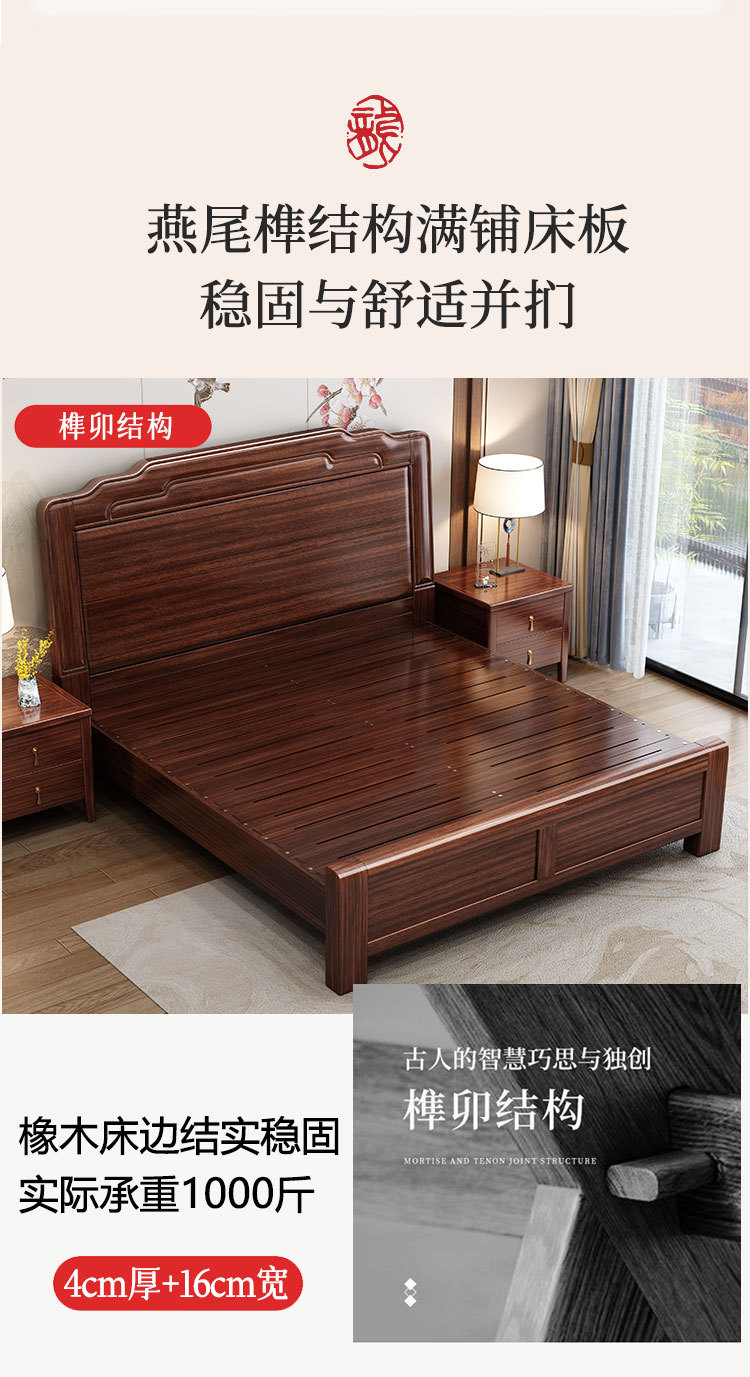 • 1.8* 2m 침대 + 1 침대 옆 탁자, 장붓구멍 및 장부 구조