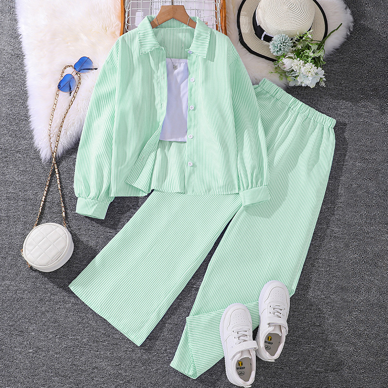 남녀 어린이 세트 국경 간 폭발 어린이 의류 2025 여름 대외 무역 새로운 3-12 세 어린이 긴팔 셔츠 바지스토어 가기