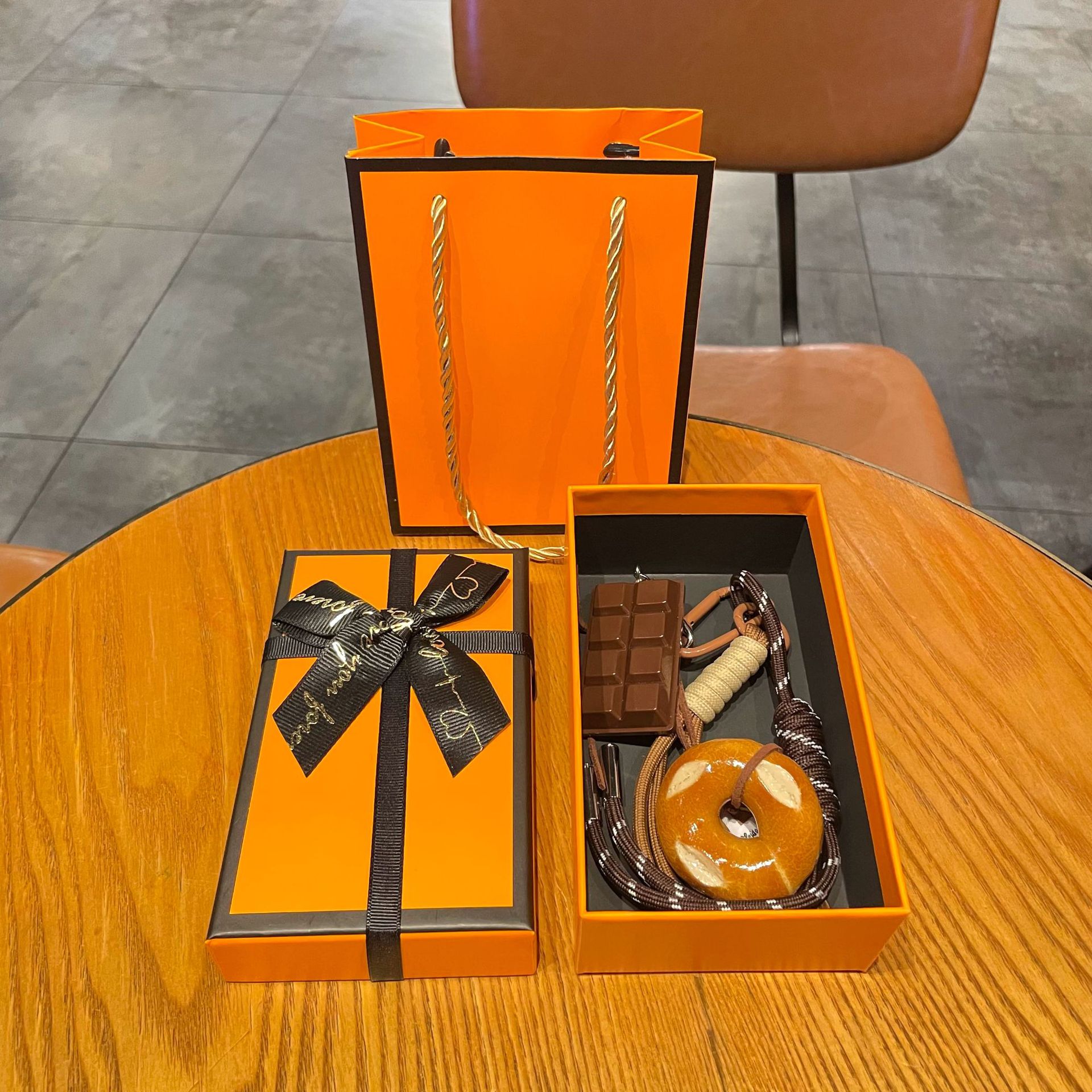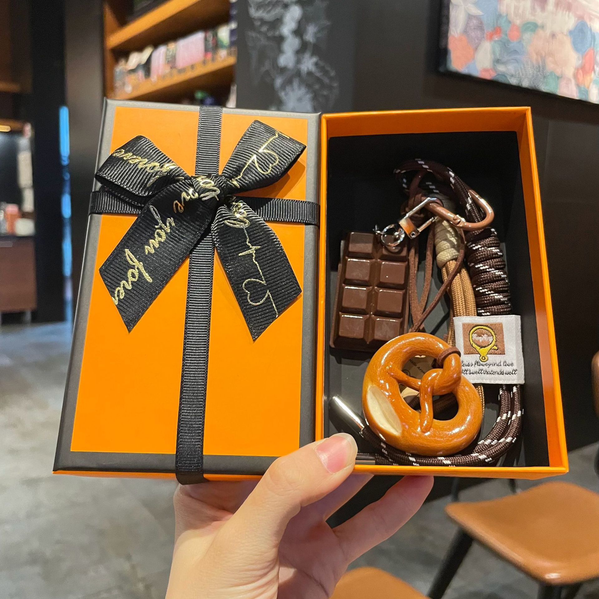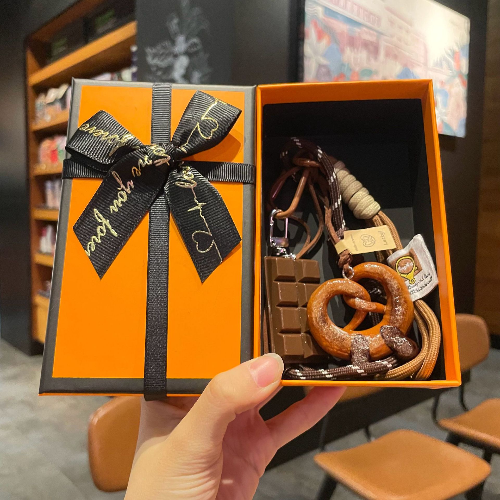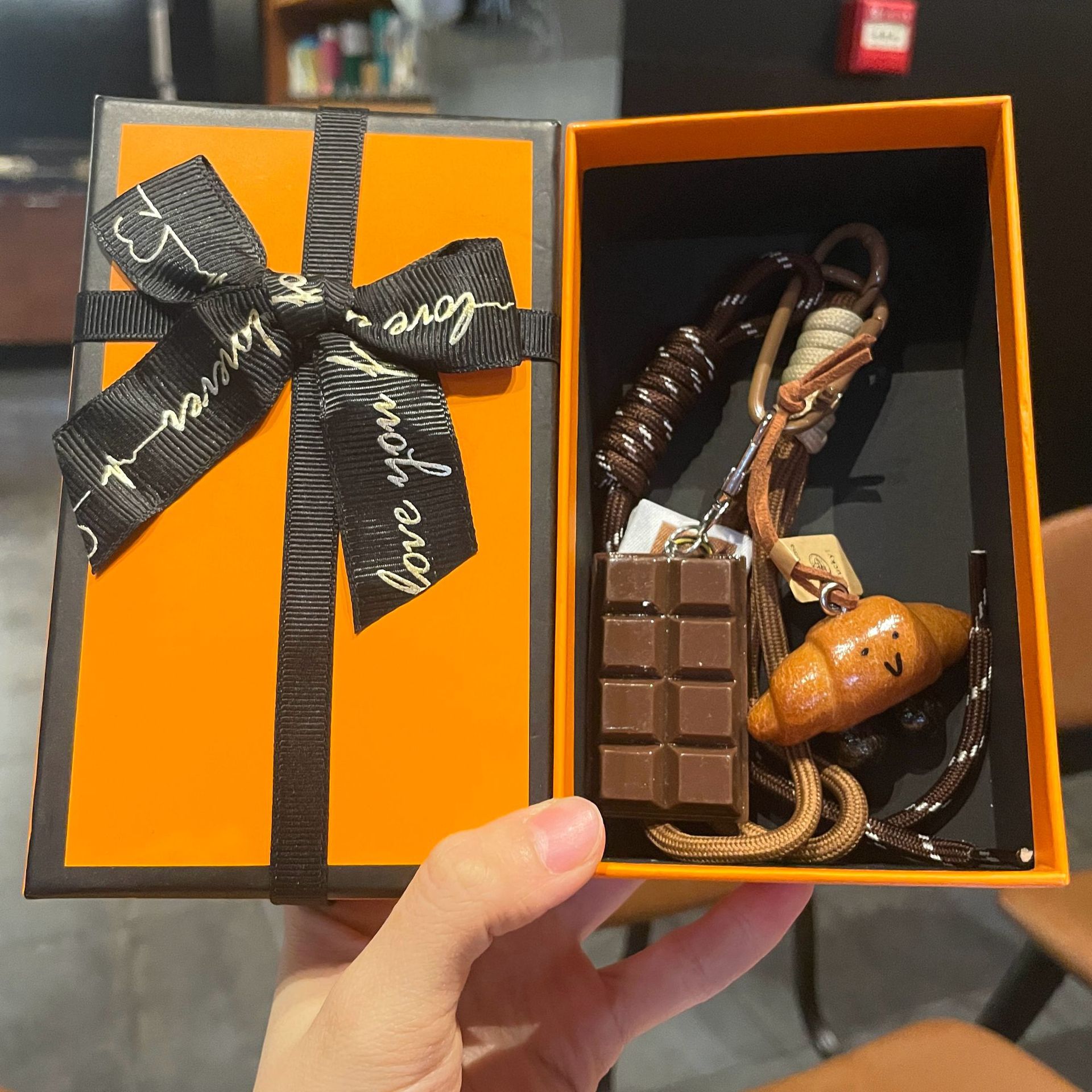 • H7miu 스타일 펜던트 - 크로아상 + 초콜릿 + 선물 상자 + 선물 가방