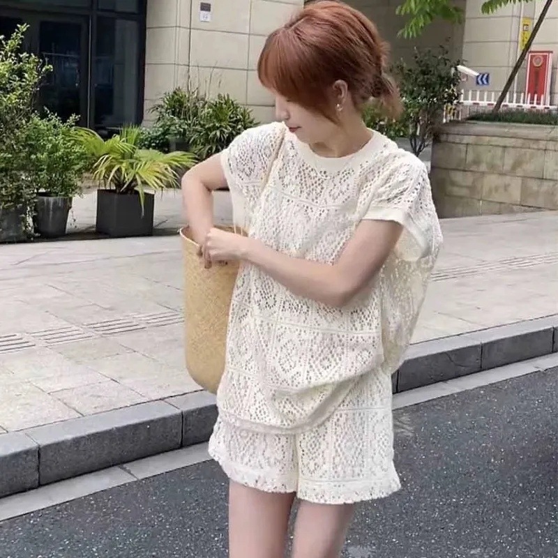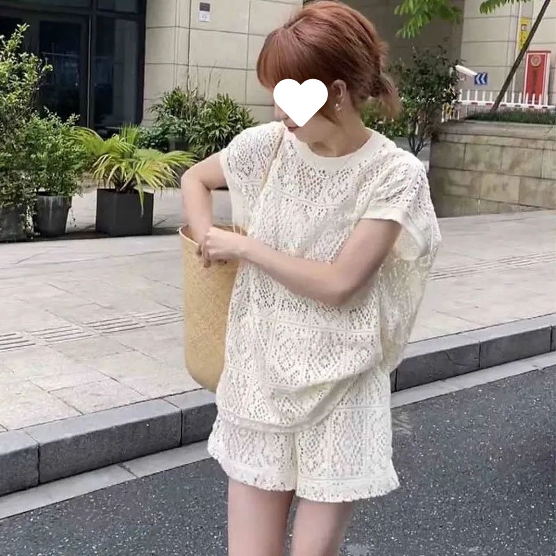패션 투피스 세트 세트 소금 빛 잘 익은 하이 엔드 레이스 속이 빈 탑 반바지 세트와 함께 여름스토어 가기