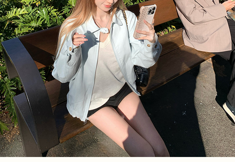 가벼운 산소 베이비 블루 라미 코튼 RL 자수 슬로피 재킷스토어 가기