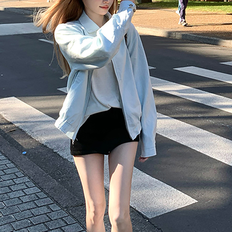 가벼운 산소 베이비 블루 라미 코튼 RL 자수 슬로피 재킷