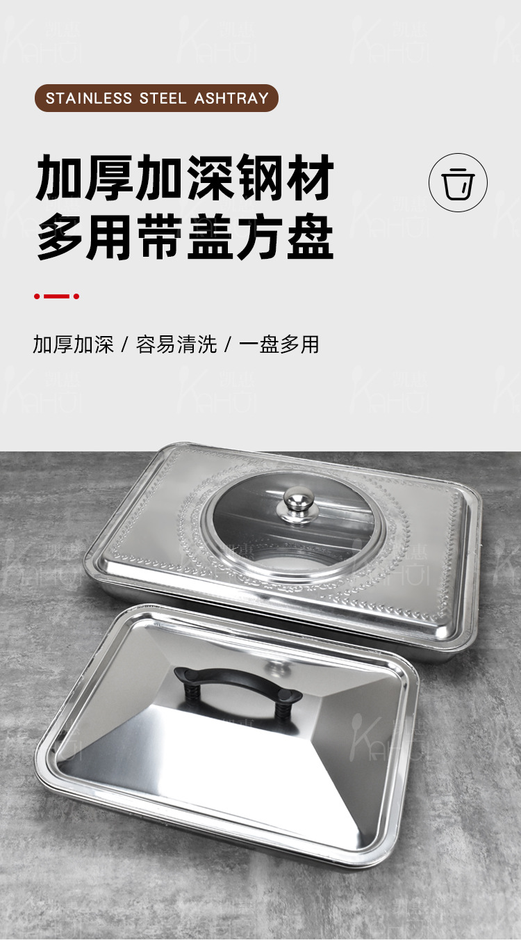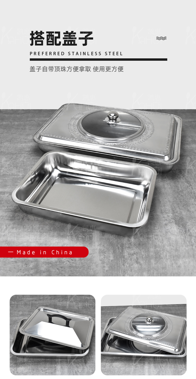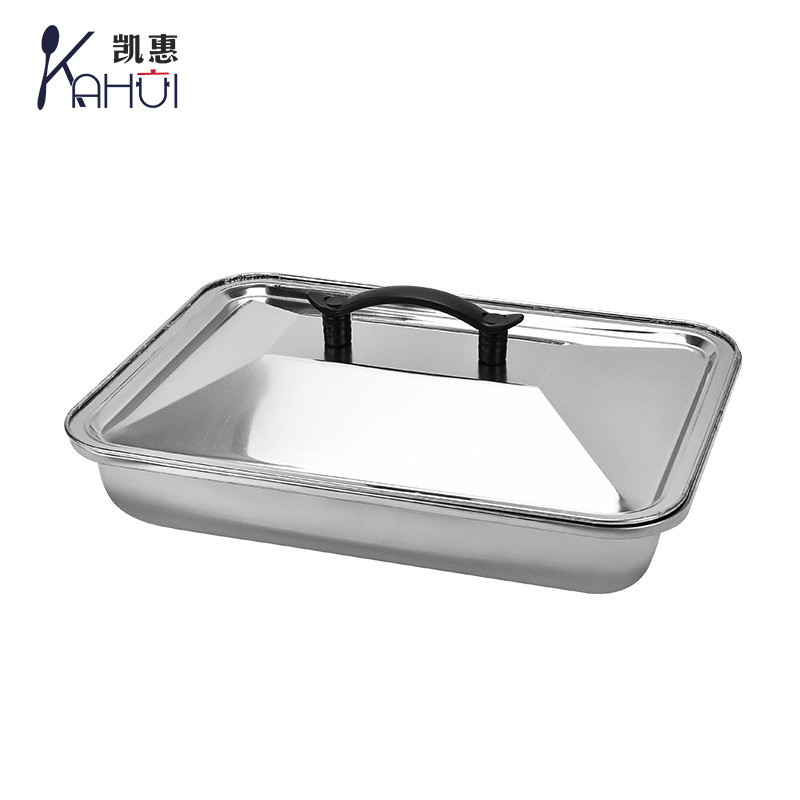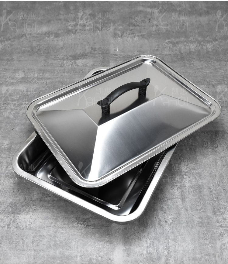 스테인레스 스틸 스퀘어 플레이트 직사각형 트레이 뚜껑 과일 플레이트 자루 플레이트 구이 생선 플레이트와 뚜껑 깊이있는 평평한 바닥 플레이트