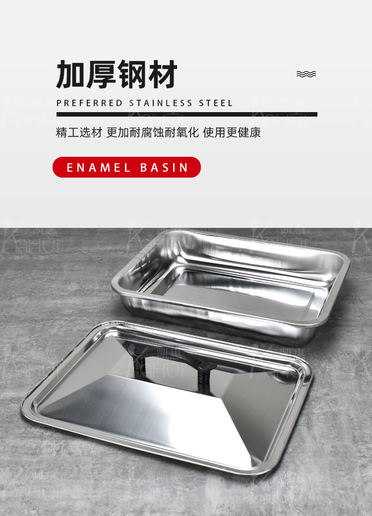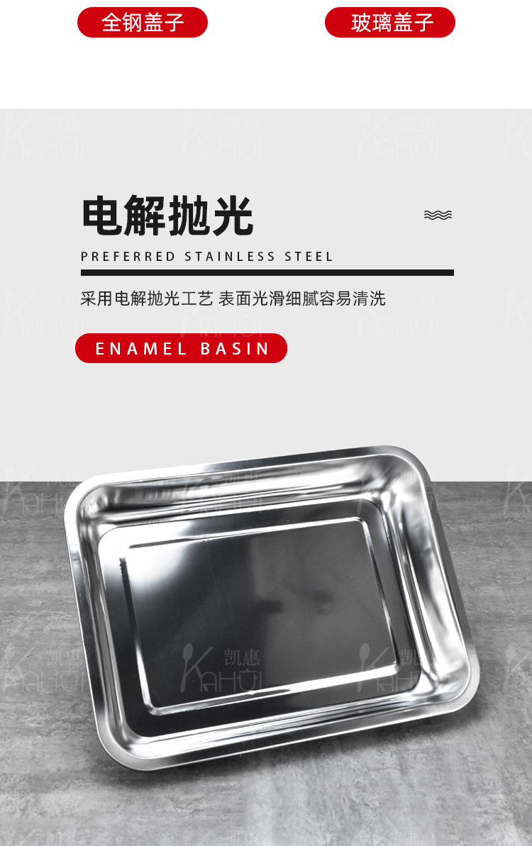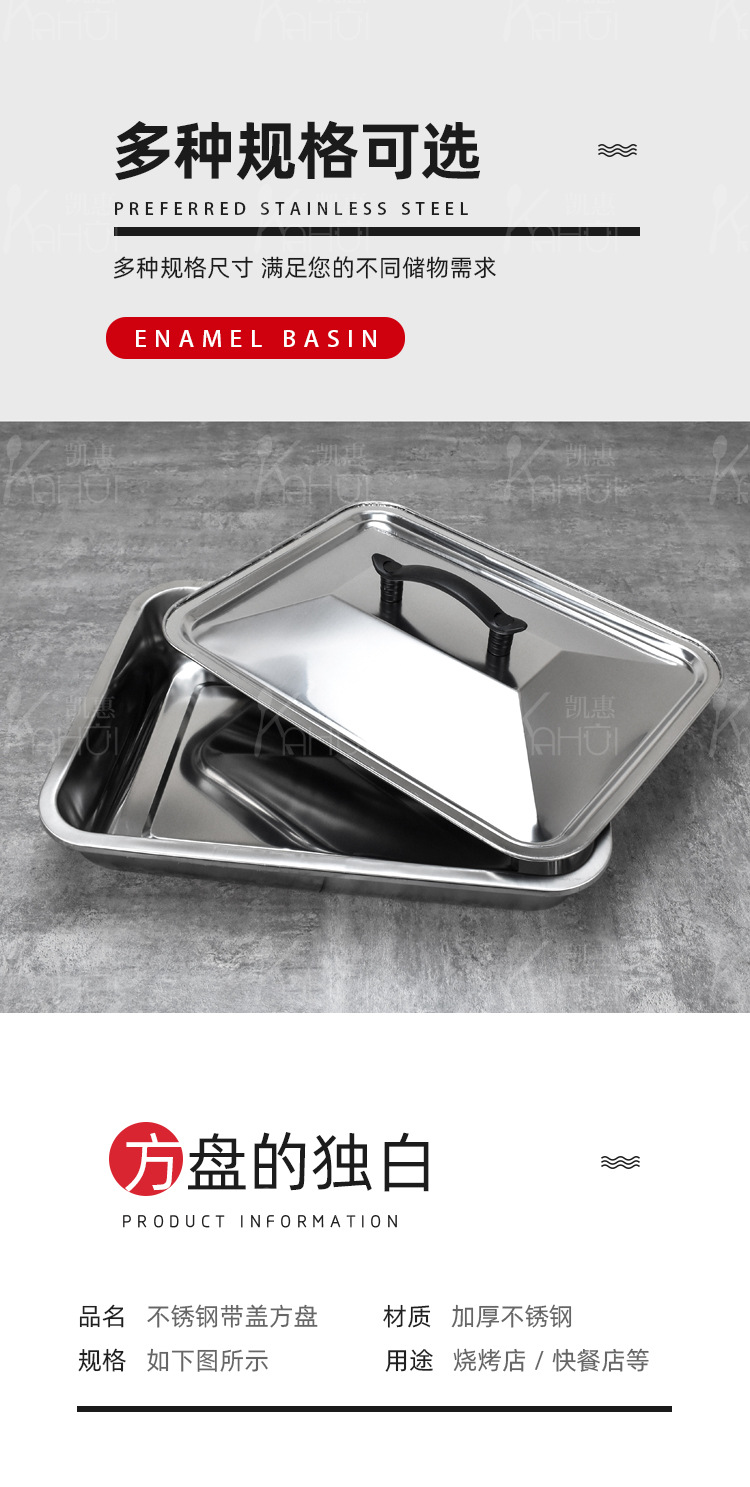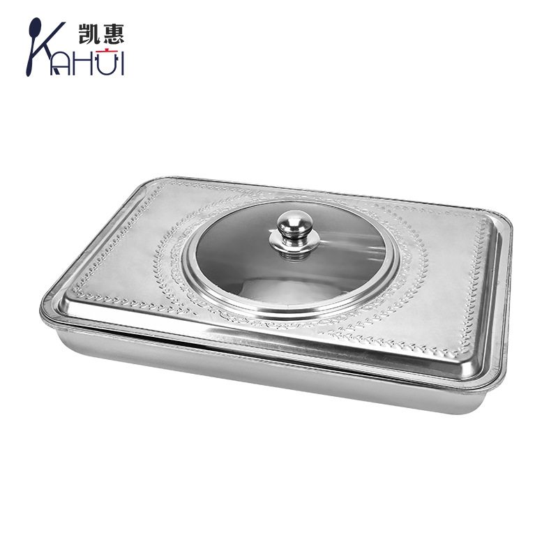 스테인레스 스틸 스퀘어 플레이트 직사각형 트레이 뚜껑 과일 플레이트 자루 플레이트 구이 생선 플레이트와 뚜껑 깊이있는 평평한 바닥 플레이트