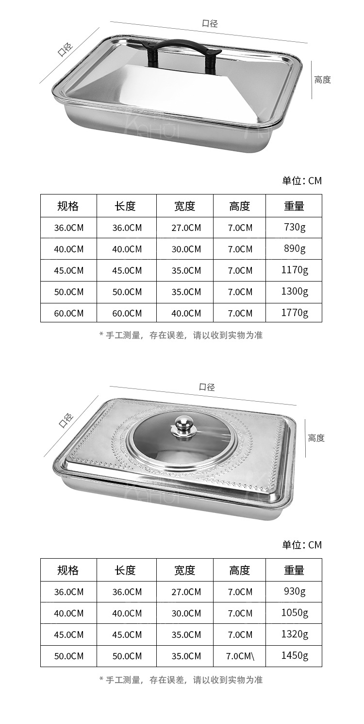 스테인레스 스틸 스퀘어 플레이트 직사각형 트레이 뚜껑 과일 플레이트 자루 플레이트 구이 생선 플레이트와 뚜껑 깊이있는 평평한 바닥 플레이트스토어 가기