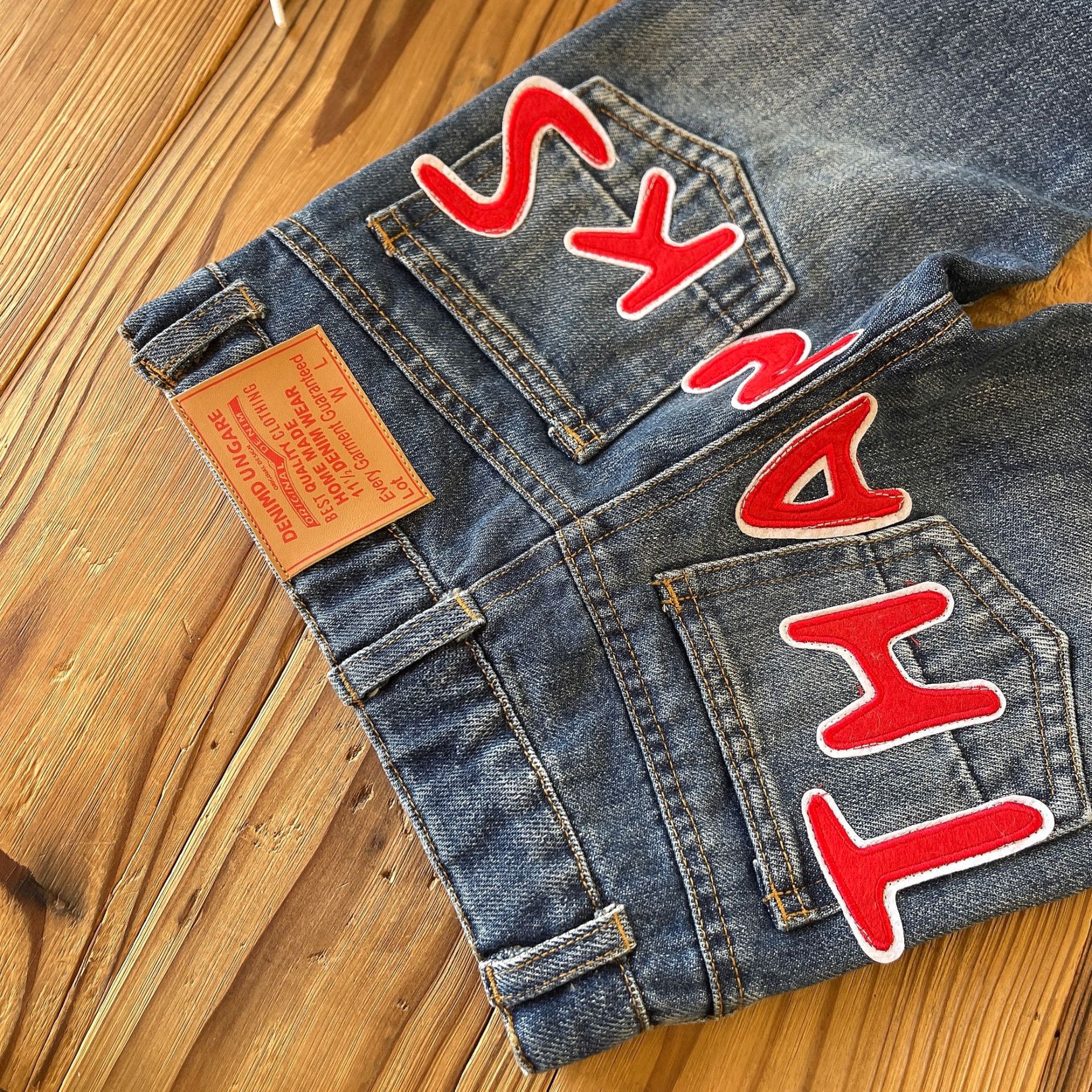 [재고] 일본 어린이 중세 아동복 DD 배지 청바지 스트레이트 팬츠