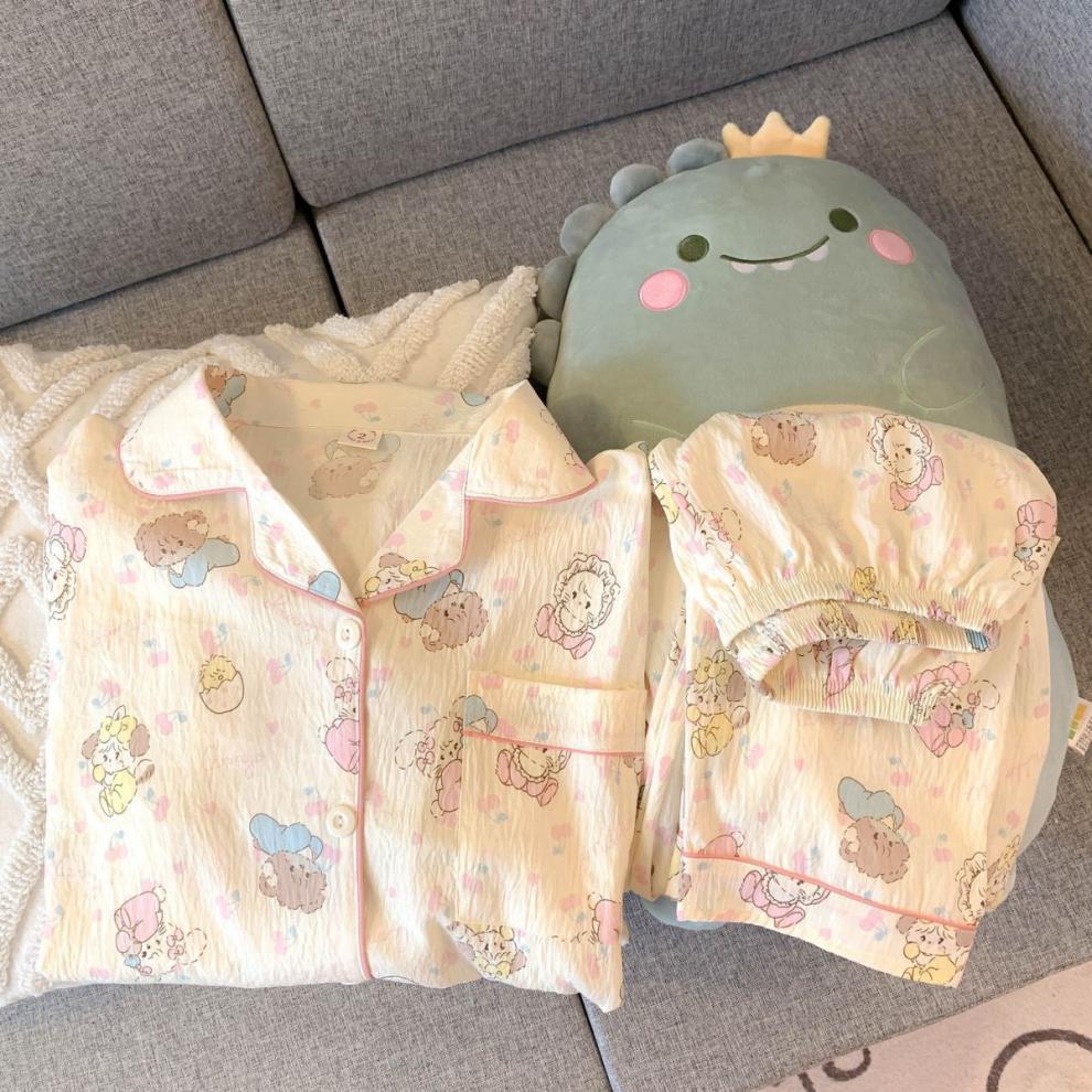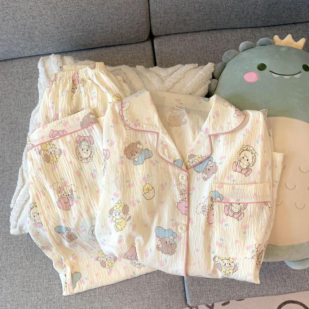 소녀 잠옷 구름 면 봄과 가을 새 면 긴 소매 바지 만화 귀여운 중대형 어린이 홈 의류 세트스토어 가기